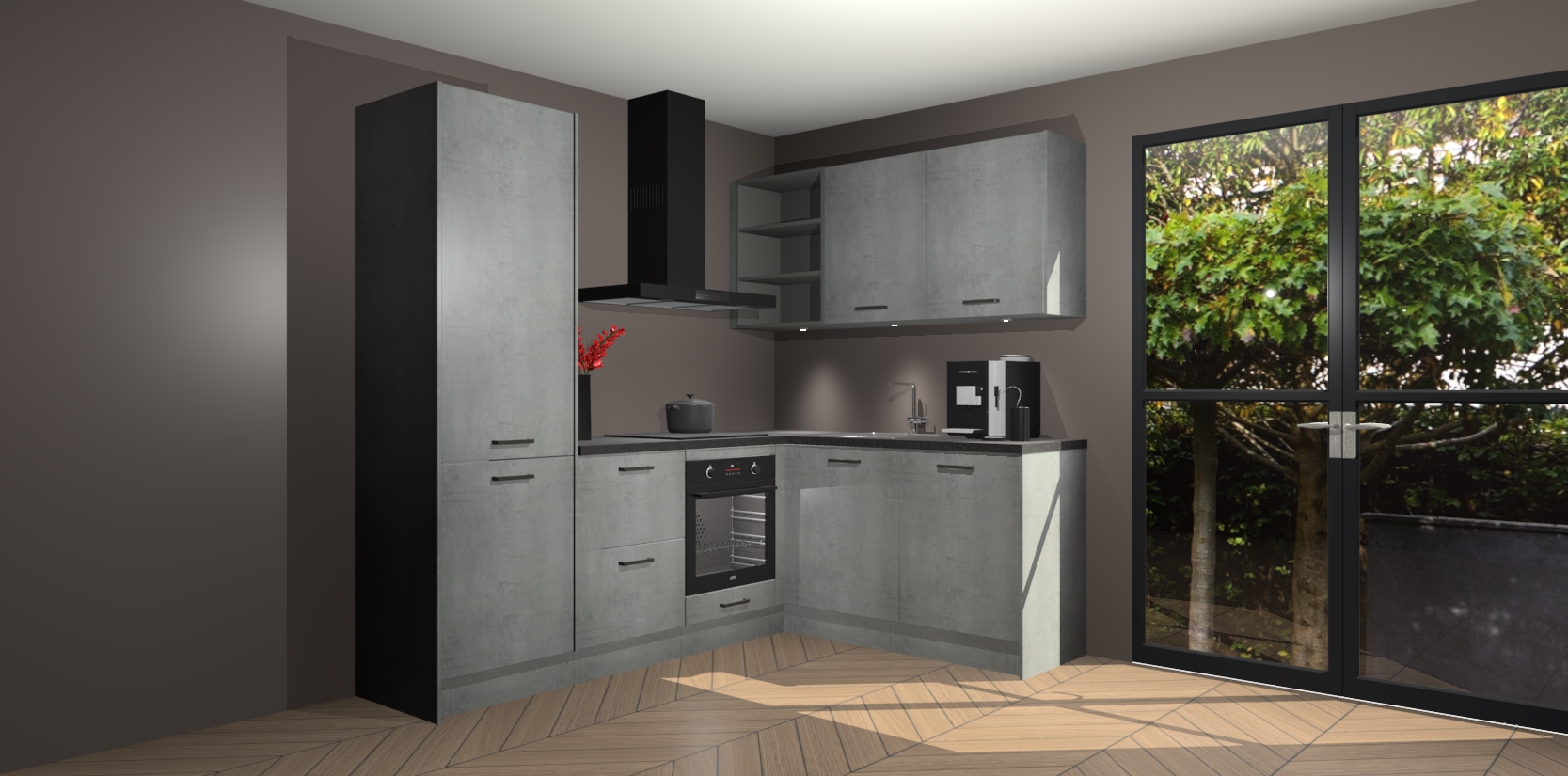 Wauw, dit is de Beton Parelgrijs keuken Pilsen! U kunt gerust zeggen dat u elegantie combineert met functionaliteit met deze keuken. Met een modern en chique ontwerp is de keuken precies wat u nodig heeft om uw ruimte te verfraaien. De binnenzijde van de kasten is in dezelfde donkere kleur als de buitenzijde voor een uniforme look, compleet met softclose-kasten die stil sluiten.