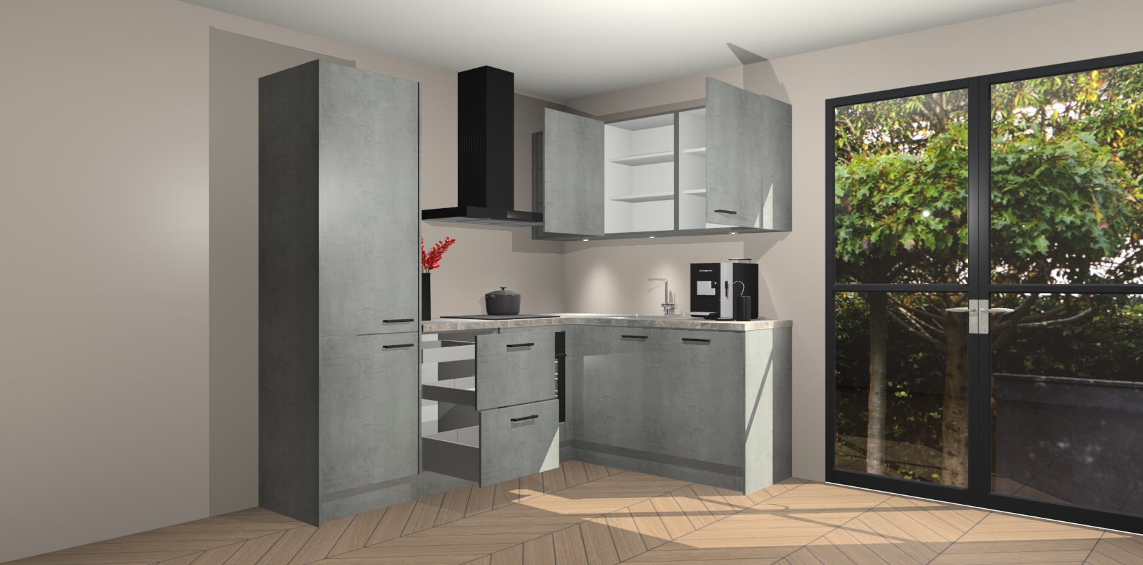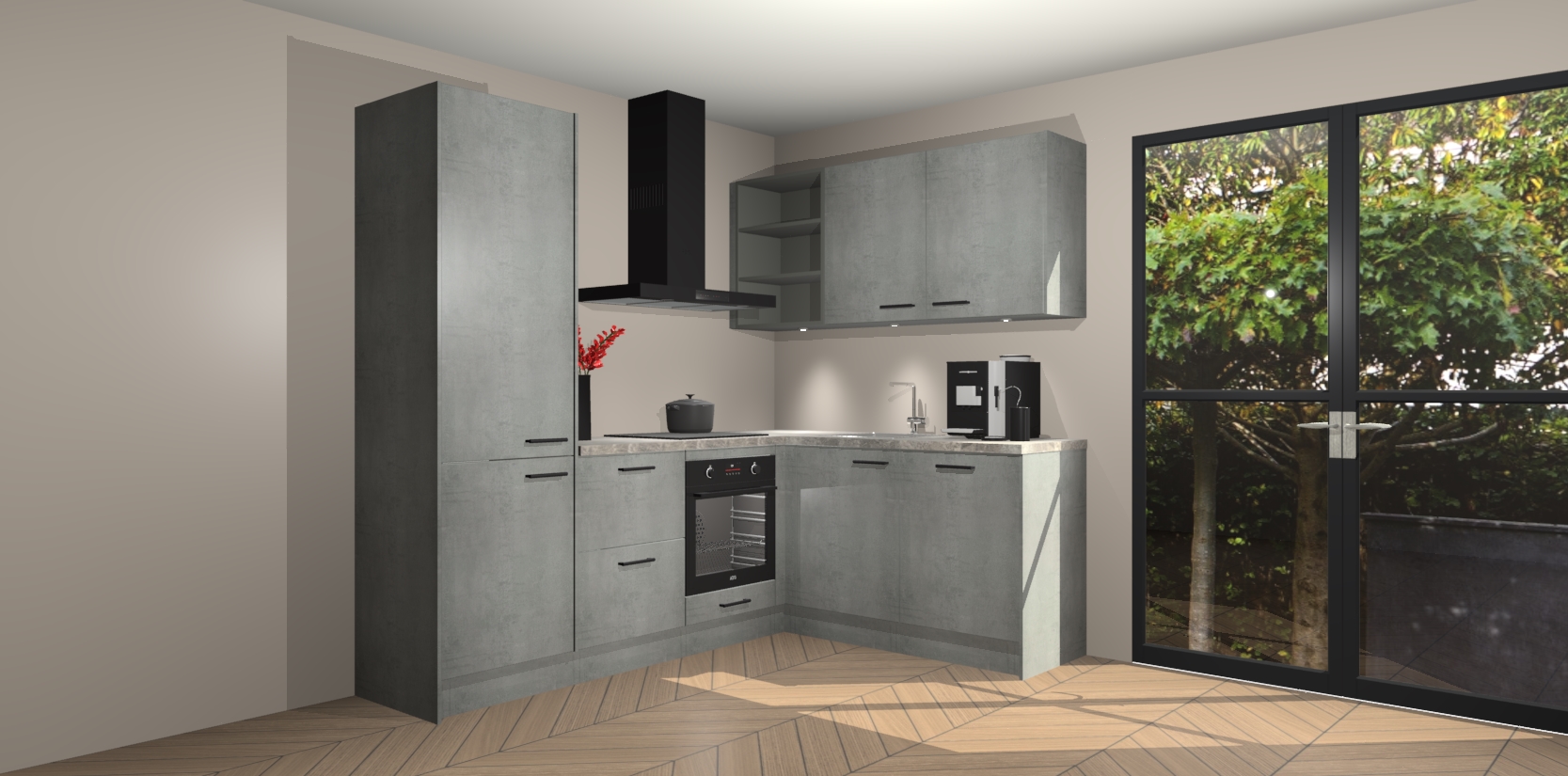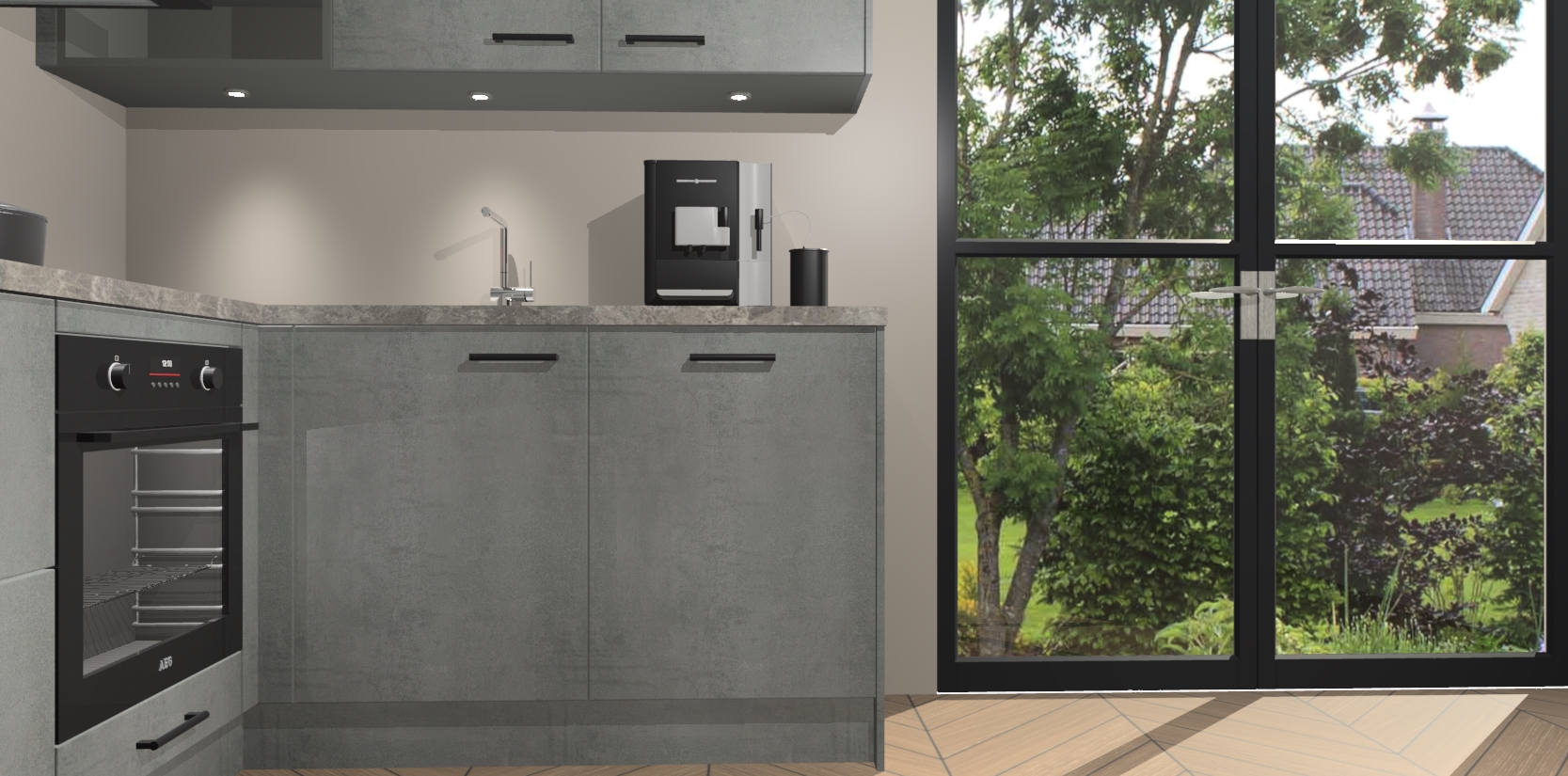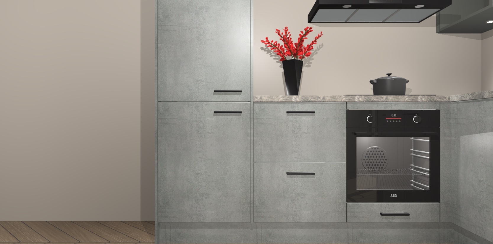 Wauw, dit is de Beton Parelgrijs keuken Pilsen! U kunt gerust zeggen dat u elegantie combineert met functionaliteit met deze keuken. Met een modern en chique ontwerp is de keuken precies wat u nodig heeft om uw ruimte te verfraaien. De binnenzijde van de kasten is in dezelfde donkere kleur als de buitenzijde voor een uniforme look, compleet met softclose-kasten die stil sluiten.