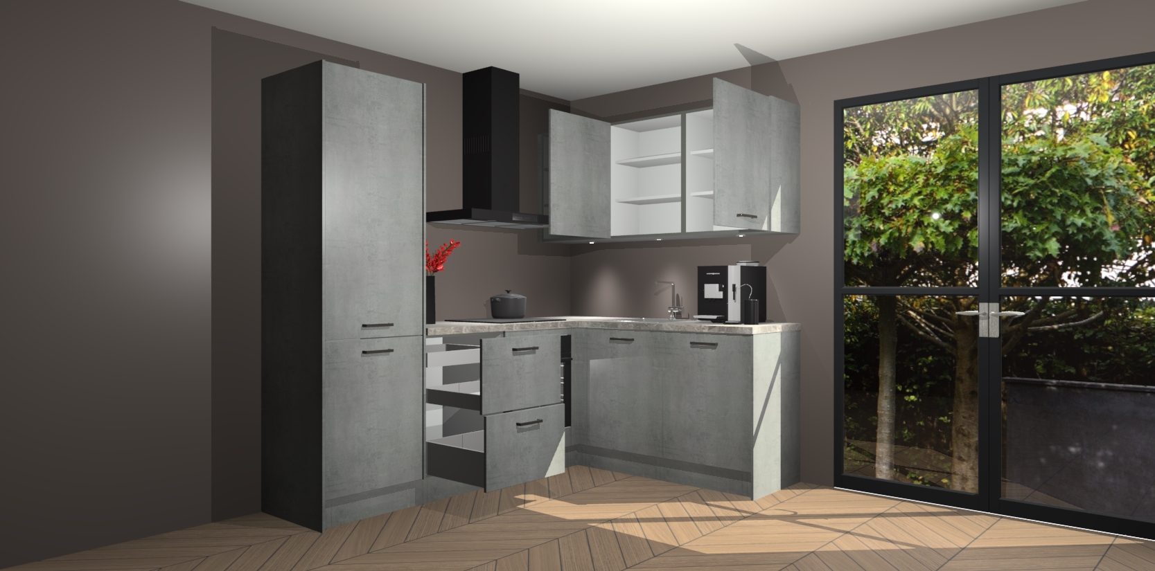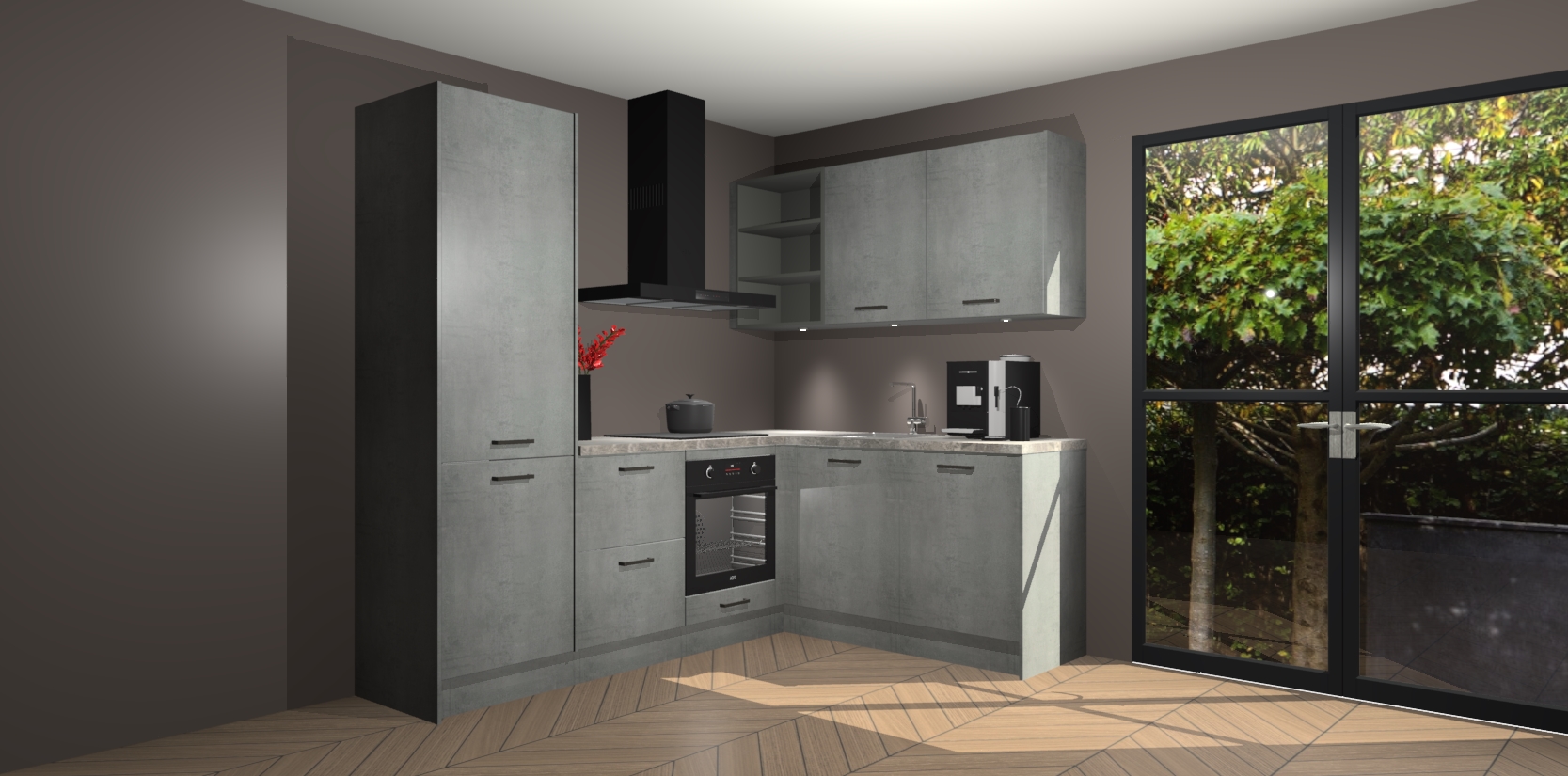 Wauw, dit is de Beton Parelgrijs keuken Pilsen! U kunt gerust zeggen dat u elegantie combineert met functionaliteit met deze keuken. Met een modern en chique ontwerp is de keuken precies wat u nodig heeft om uw ruimte te verfraaien. De binnenzijde van de kasten is in dezelfde donkere kleur als de buitenzijde voor een uniforme look, compleet met softclose-kasten die stil sluiten.