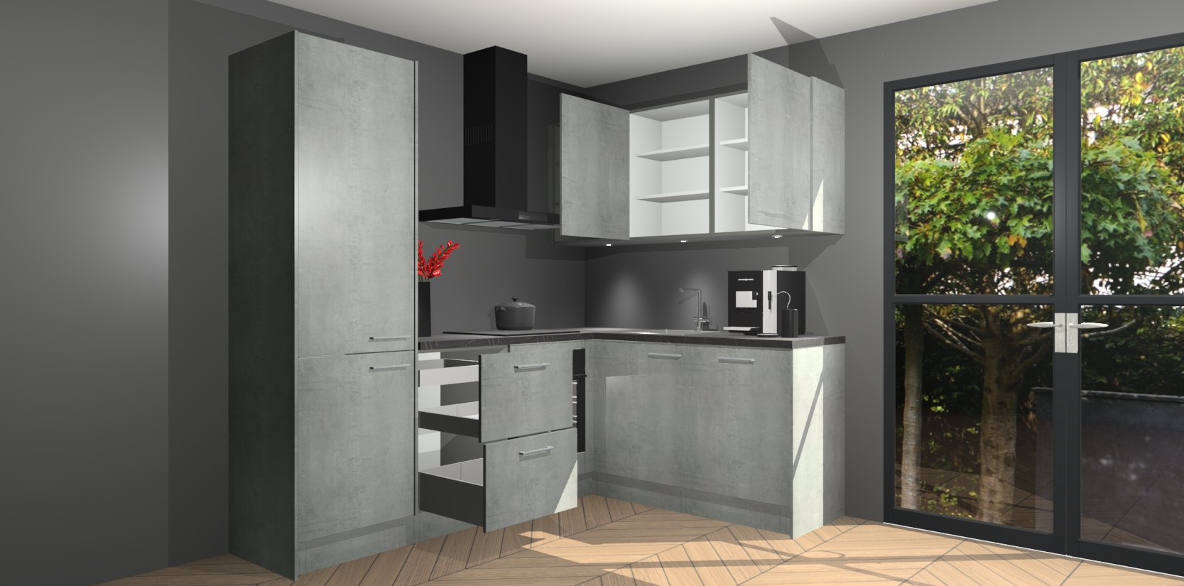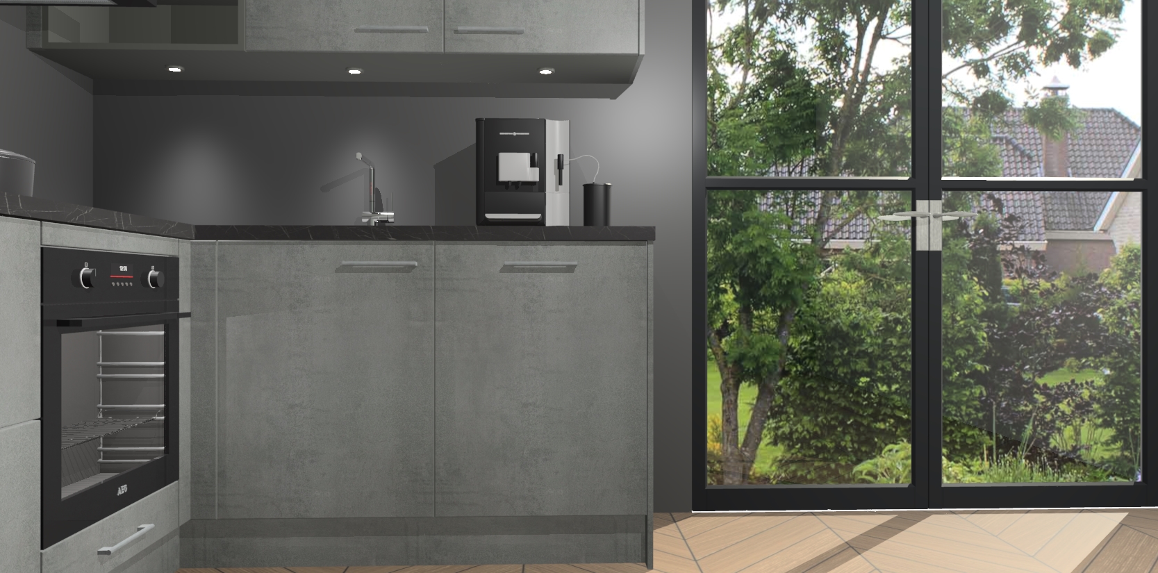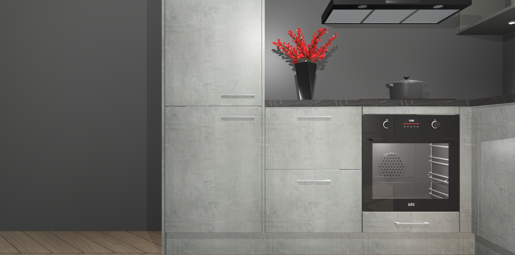 Wauw, dit is de Beton Parelgrijs keuken Pilsen! U kunt gerust zeggen dat u elegantie combineert met functionaliteit met deze keuken. Met een modern en chique ontwerp is de keuken precies wat u nodig heeft om uw ruimte te verfraaien. De binnenzijde van de kasten is in dezelfde donkere kleur als de buitenzijde voor een uniforme look, compleet met softclose-kasten die stil sluiten.