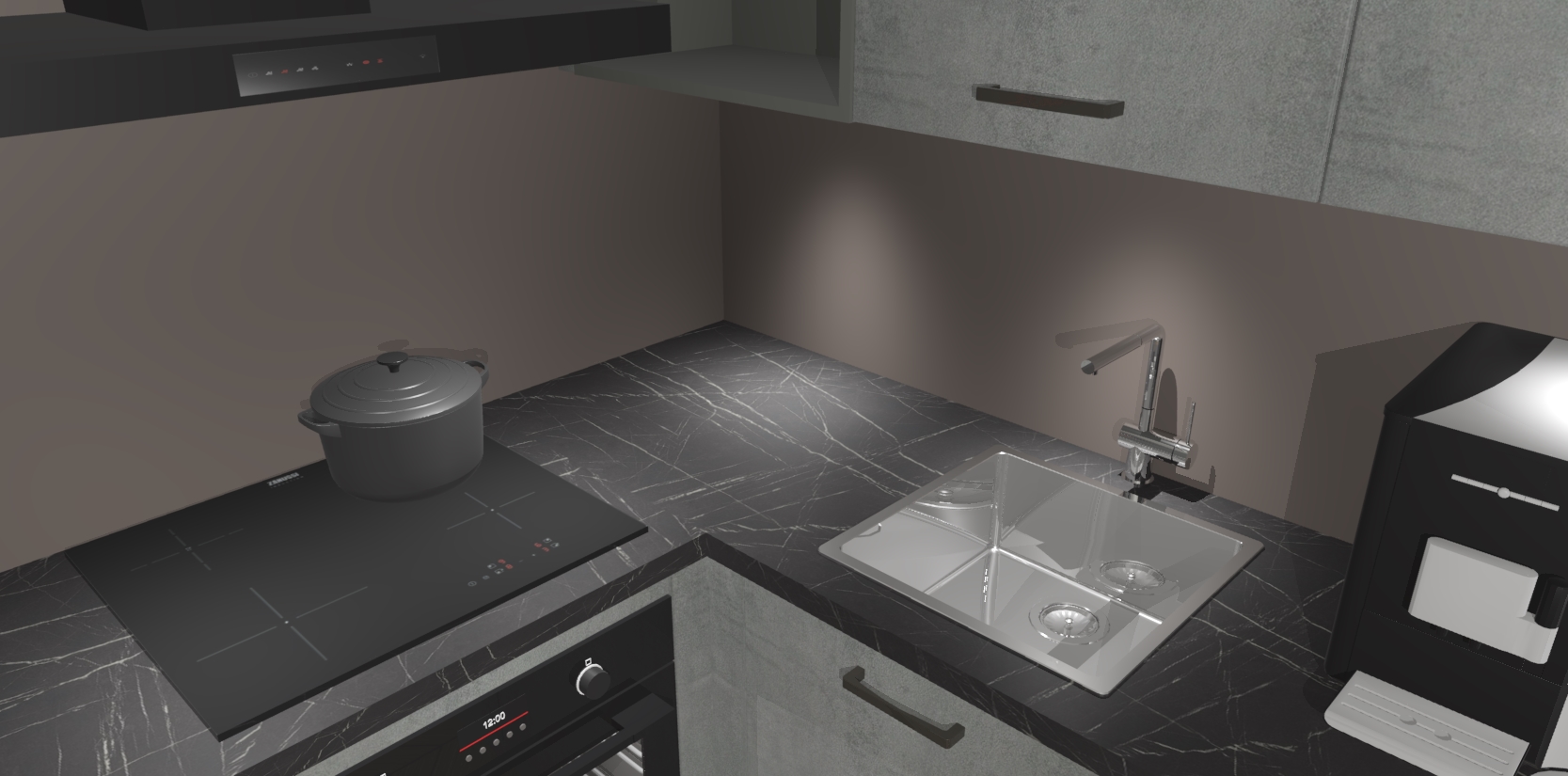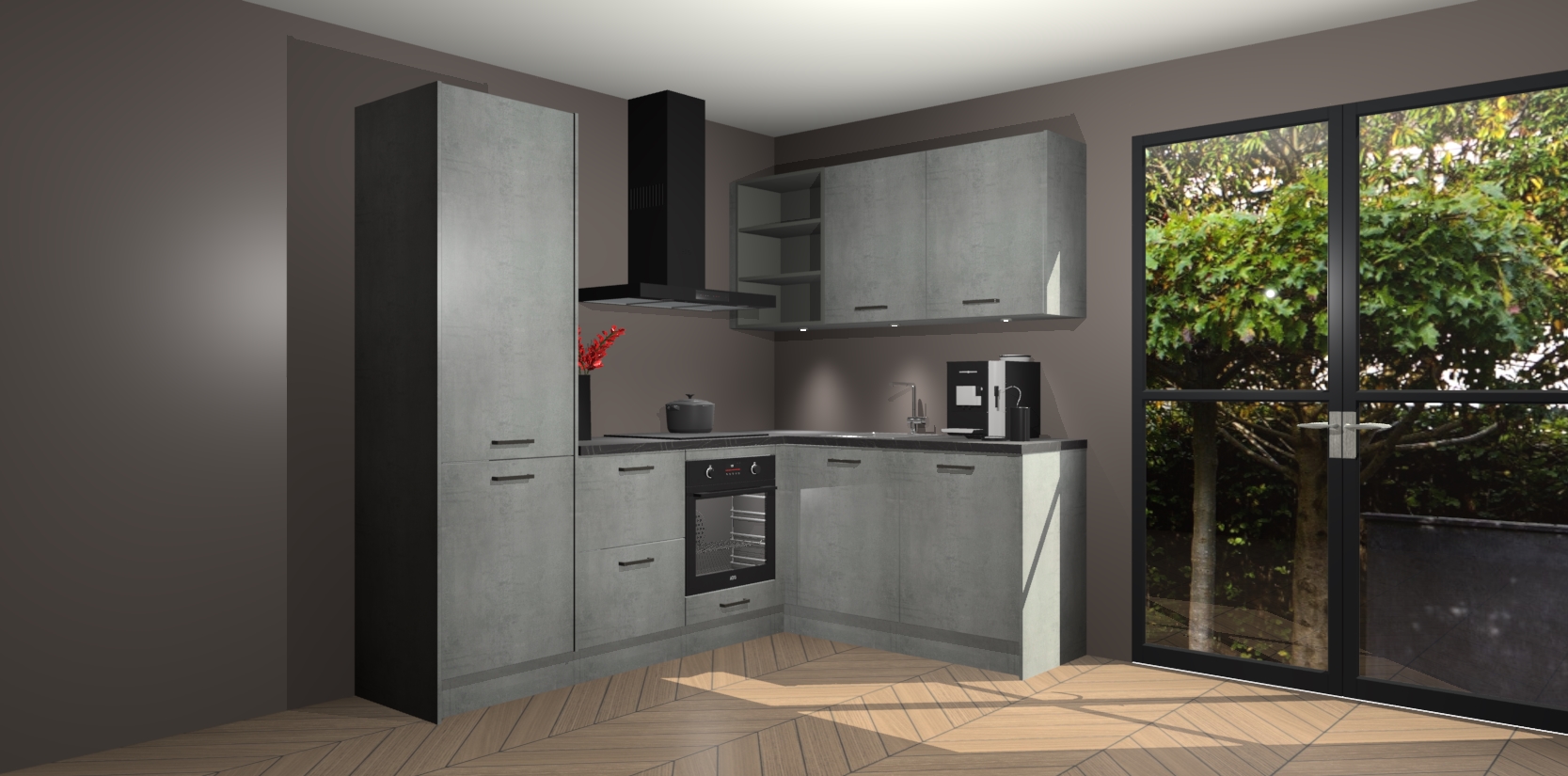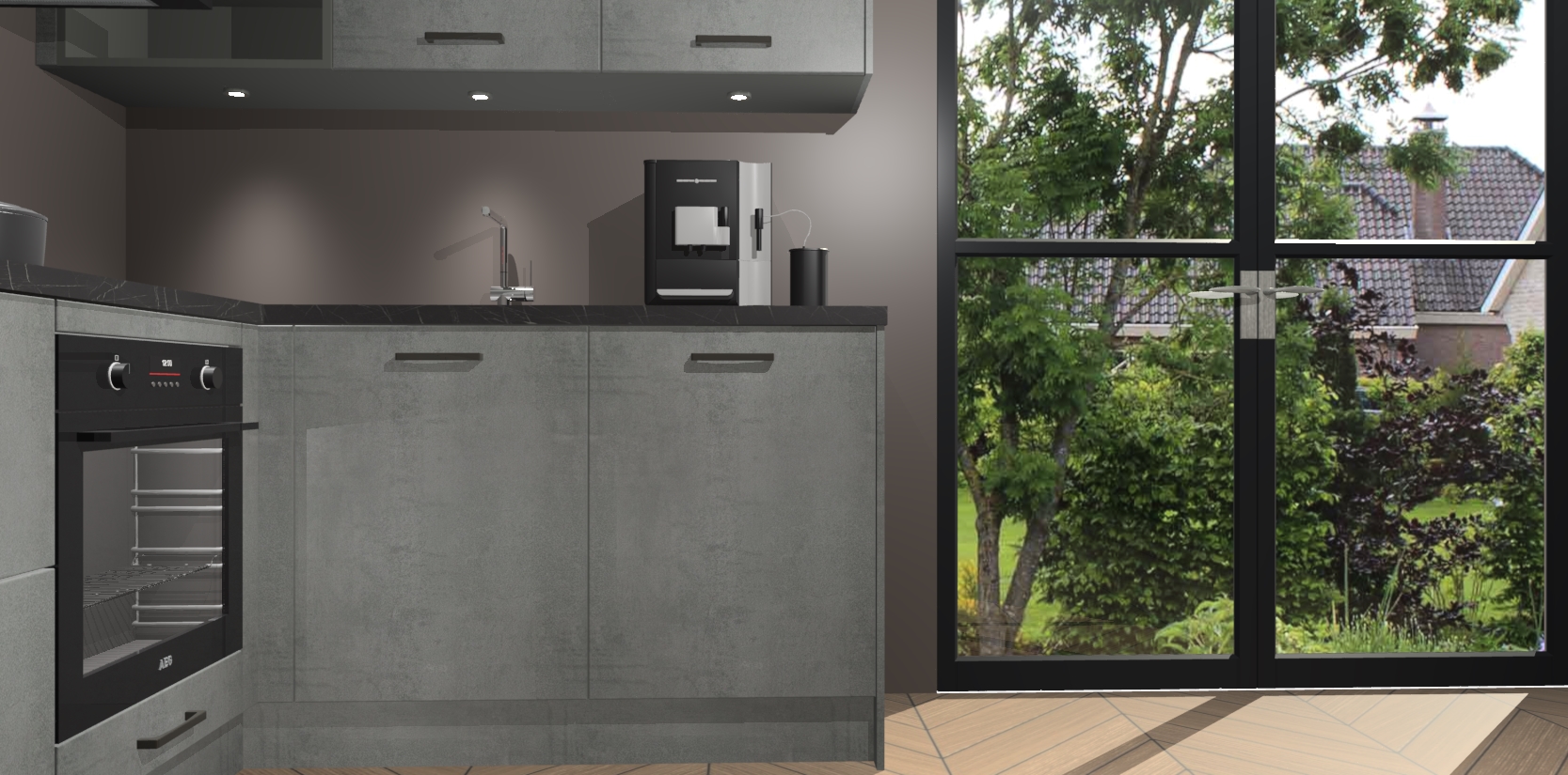 Wauw, dit is de Beton Parelgrijs keuken Pilsen! U kunt gerust zeggen dat u elegantie combineert met functionaliteit met deze keuken. Met een modern en chique ontwerp is de keuken precies wat u nodig heeft om uw ruimte te verfraaien. De binnenzijde van de kasten is in dezelfde donkere kleur als de buitenzijde voor een uniforme look, compleet met softclose-kasten die stil sluiten.