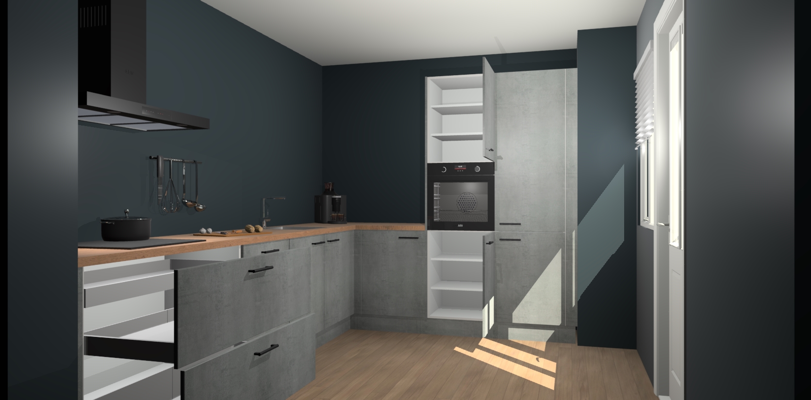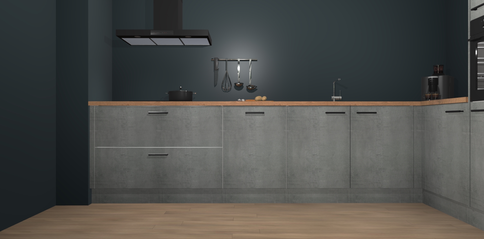 Welkom bij de Beton Parelgrijs keuken Portland. Deze prachtige keuken zal de komende jaren het middelpunt van de belangstelling in uw huis zijn. Uitgerust met vijf inbouwapparaten komt u nooit kookgereedschap tekort. Bovendien geeft de warme houtlook elke ruimte een uitnodigende en tijdloze uitstraling.