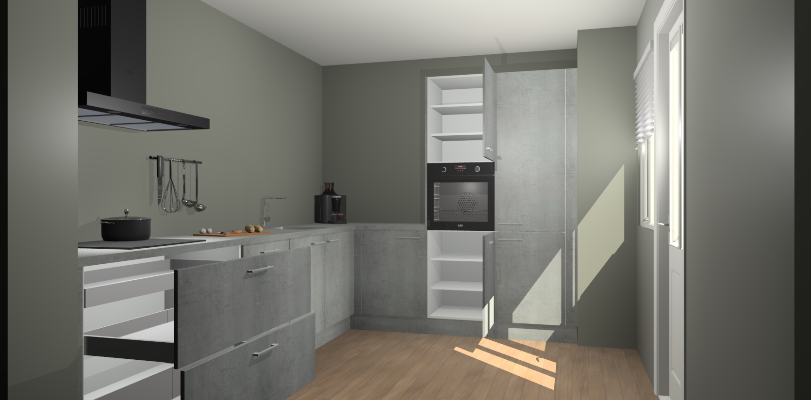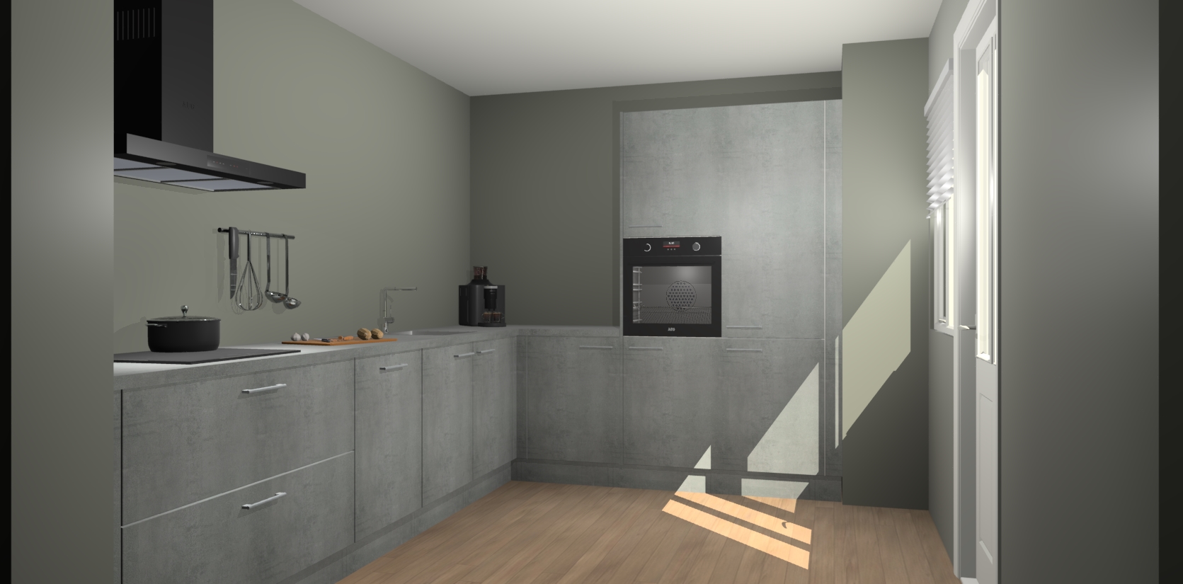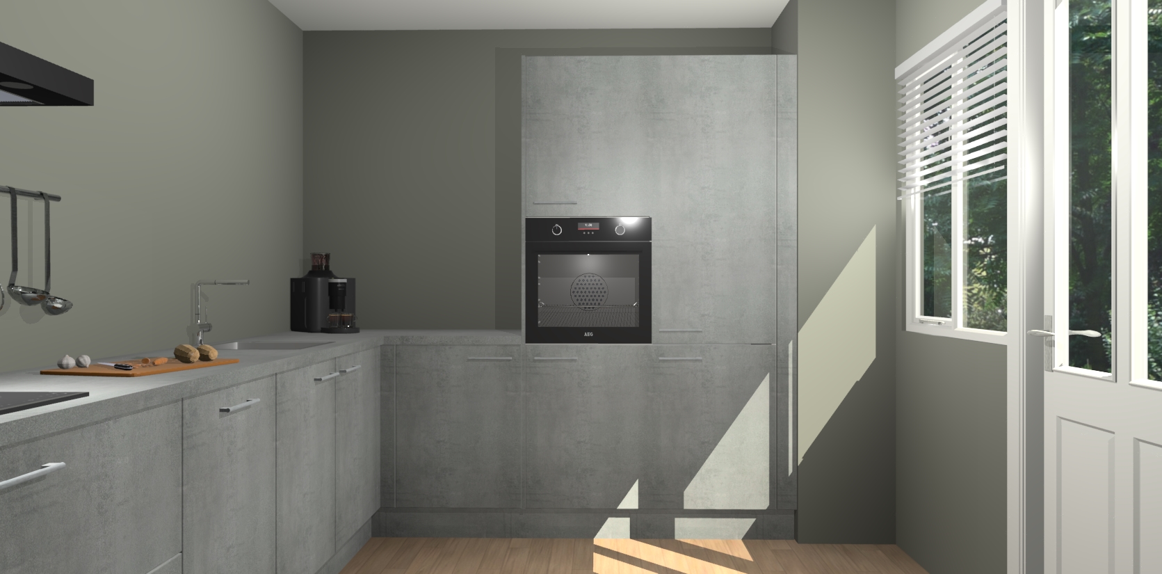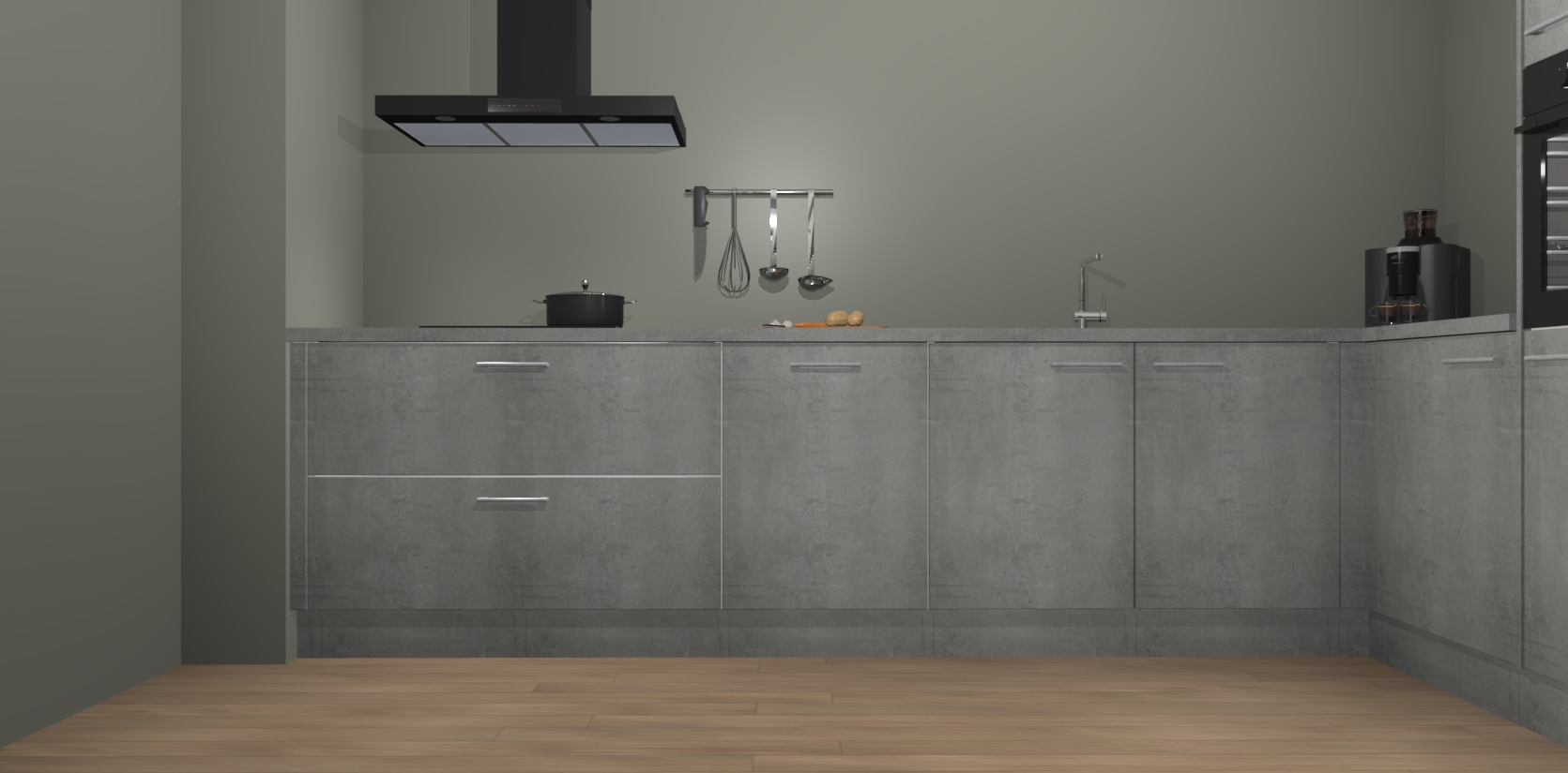 Welkom bij de Beton Parelgrijs keuken Portland. Deze prachtige keuken zal de komende jaren het middelpunt van de belangstelling in uw huis zijn. Uitgerust met vijf inbouwapparaten komt u nooit kookgereedschap tekort. Bovendien geeft de warme houtlook elke ruimte een uitnodigende en tijdloze uitstraling.