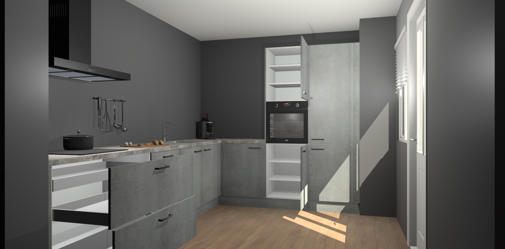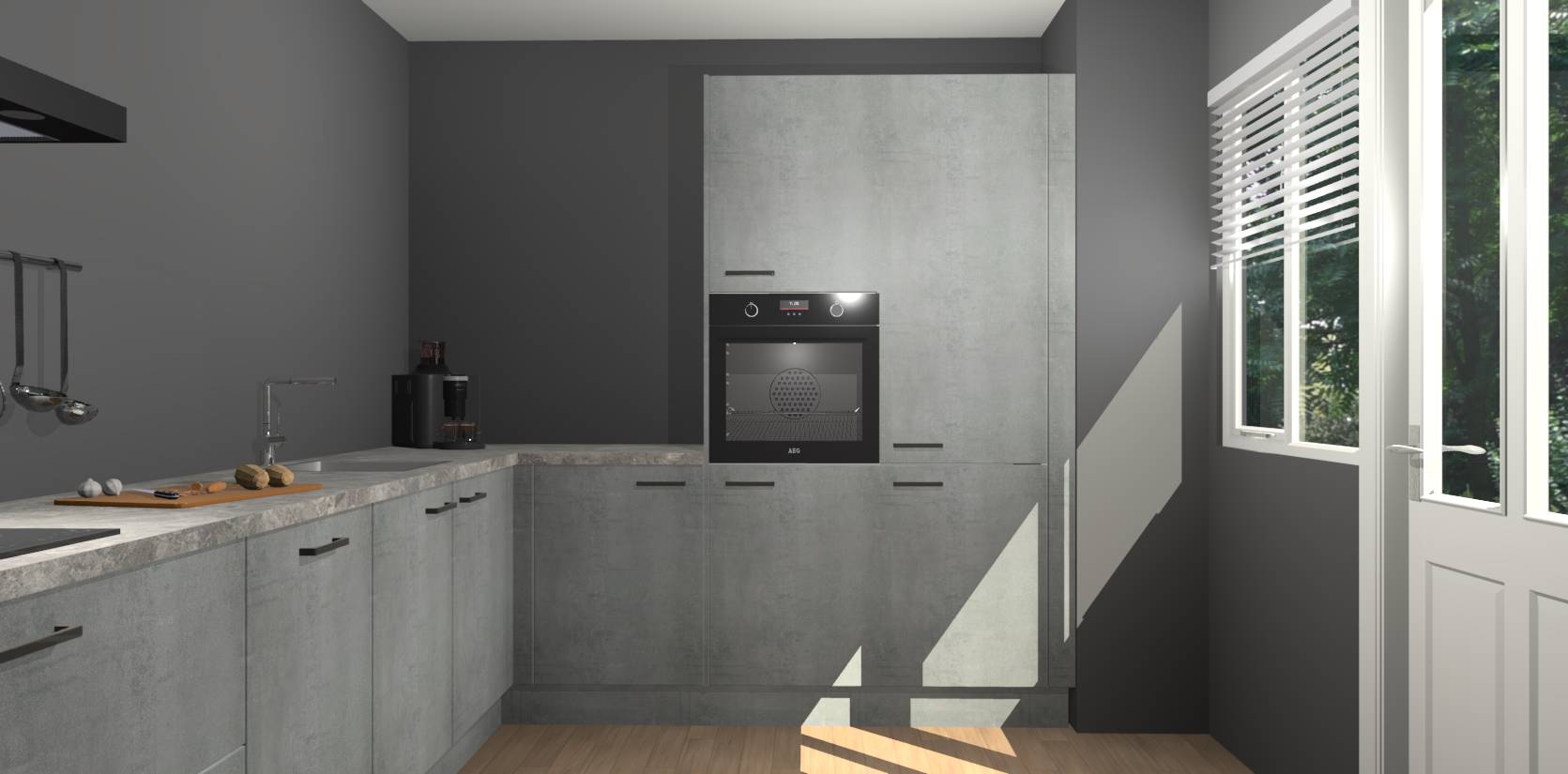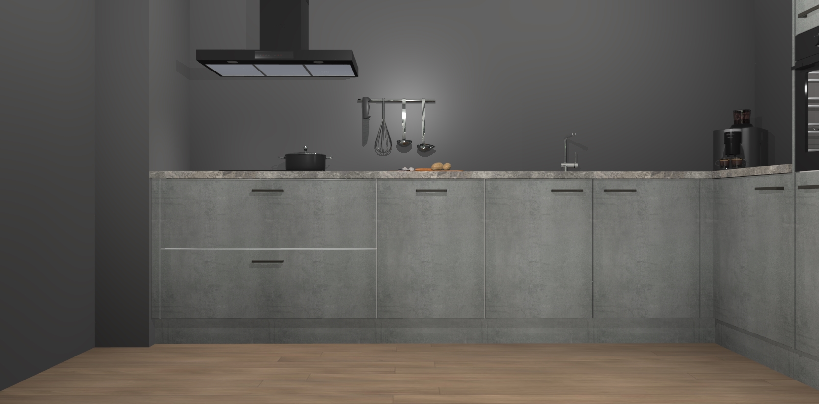 Welkom bij de Beton Parelgrijs keuken Portland. Deze prachtige keuken zal de komende jaren het middelpunt van de belangstelling in uw huis zijn. Uitgerust met vijf inbouwapparaten komt u nooit kookgereedschap tekort. Bovendien geeft de warme houtlook elke ruimte een uitnodigende en tijdloze uitstraling.