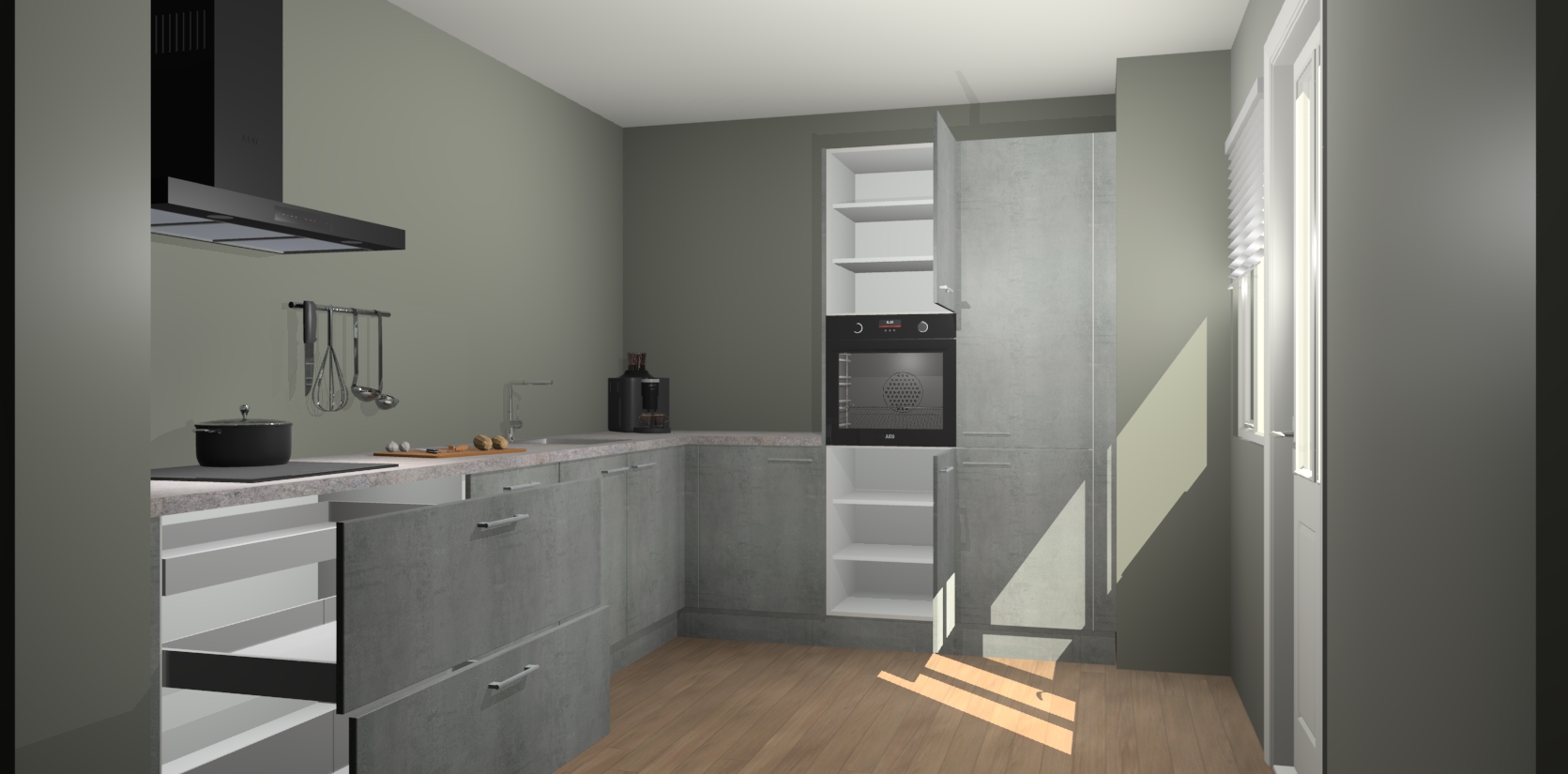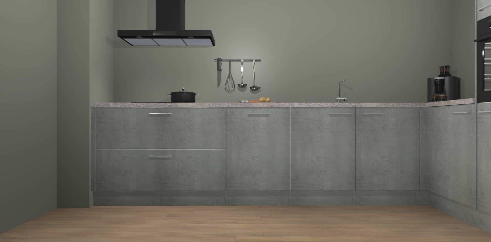 Welkom bij de Beton Parelgrijs keuken Portland. Deze prachtige keuken zal de komende jaren het middelpunt van de belangstelling in uw huis zijn. Uitgerust met vijf inbouwapparaten komt u nooit kookgereedschap tekort. Bovendien geeft de warme houtlook elke ruimte een uitnodigende en tijdloze uitstraling.