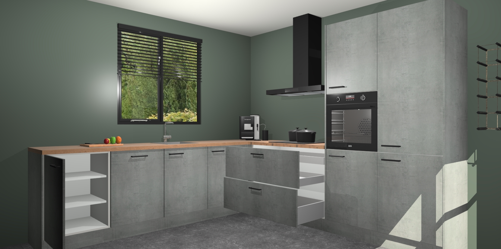 De Beton Parelgrijs keuken Porto heeft 5 ingebouwde apparaten - een oven, inductiekookplaat, afzuigkap, vaatwasser en koelkast - waarmee u in een handomdraai heerlijke gerechten bereidt. Soft-close deuren zorgen voor nog meer functionaliteit en gemak. En dit alles voor een onverslaanbaar vaste prijs. En als u nu bestelt, duurt de levering maar 7 weken! Wat nog ongelooflijker is, is dat onze kasten voor gemonteerd worden geleverd.
