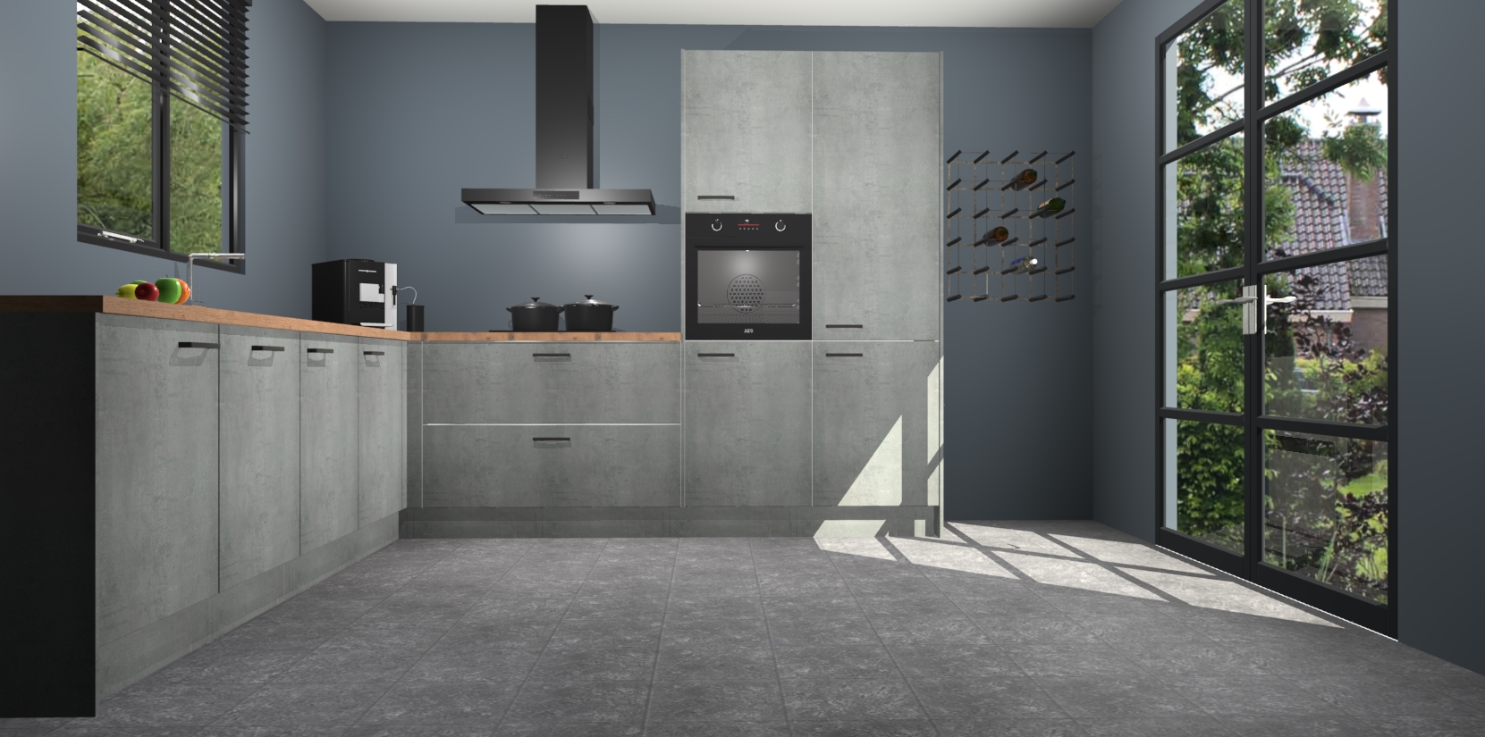 De Beton Parelgrijs keuken Porto heeft 5 ingebouwde apparaten - een oven, inductiekookplaat, afzuigkap, vaatwasser en koelkast - waarmee u in een handomdraai heerlijke gerechten bereidt. Soft-close deuren zorgen voor nog meer functionaliteit en gemak. En dit alles voor een onverslaanbaar vaste prijs. En als u nu bestelt, duurt de levering maar 7 weken! Wat nog ongelooflijker is, is dat onze kasten voor gemonteerd worden geleverd.
