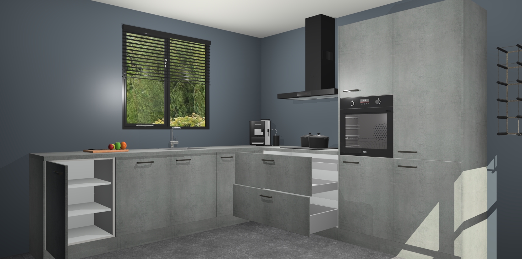 De Beton Parelgrijs keuken Porto heeft 5 ingebouwde apparaten - een oven, inductiekookplaat, afzuigkap, vaatwasser en koelkast - waarmee u in een handomdraai heerlijke gerechten bereidt. Soft-close deuren zorgen voor nog meer functionaliteit en gemak. En dit alles voor een onverslaanbaar vaste prijs. En als u nu bestelt, duurt de levering maar 7 weken! Wat nog ongelooflijker is, is dat onze kasten voor gemonteerd worden geleverd.