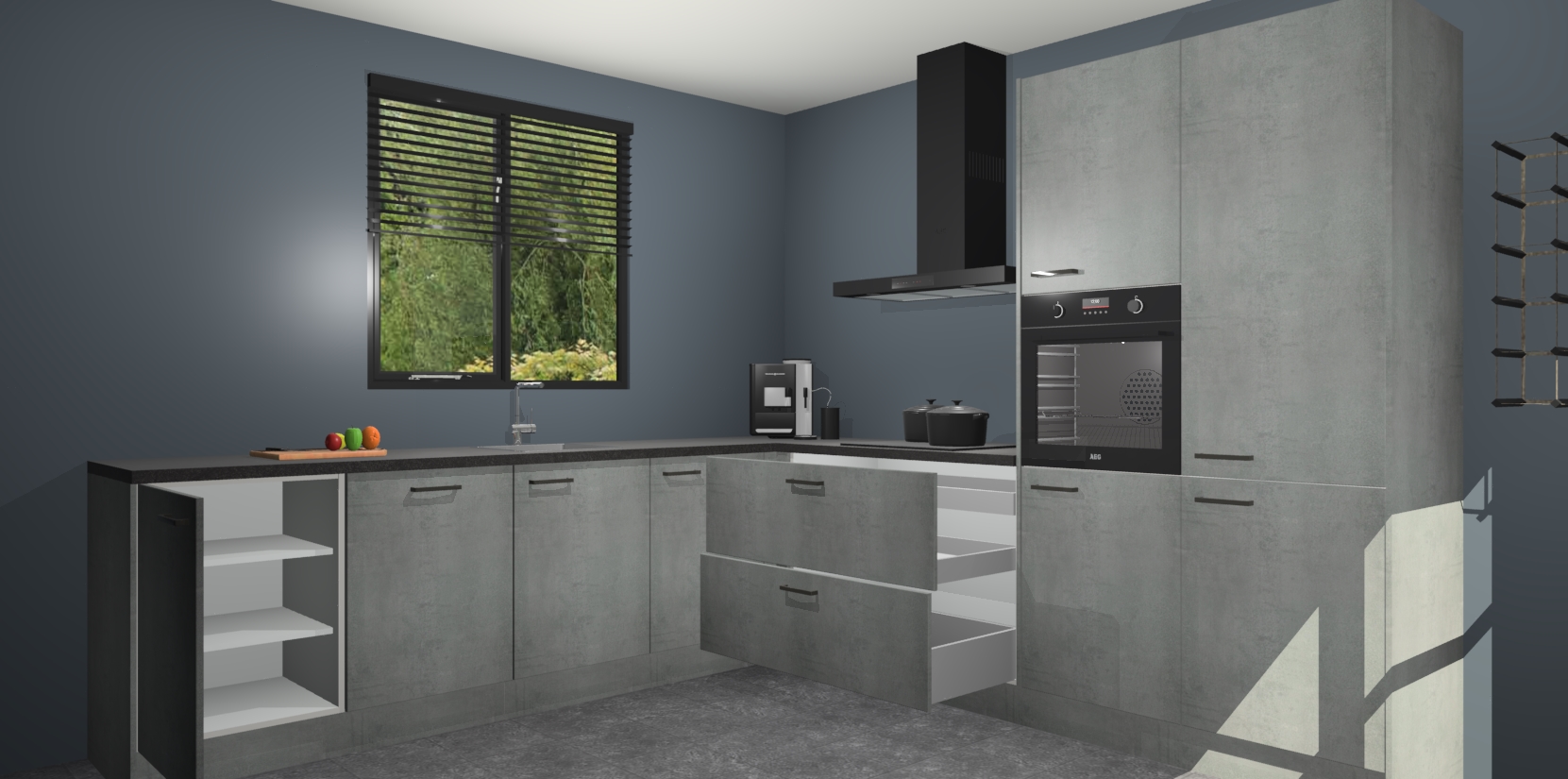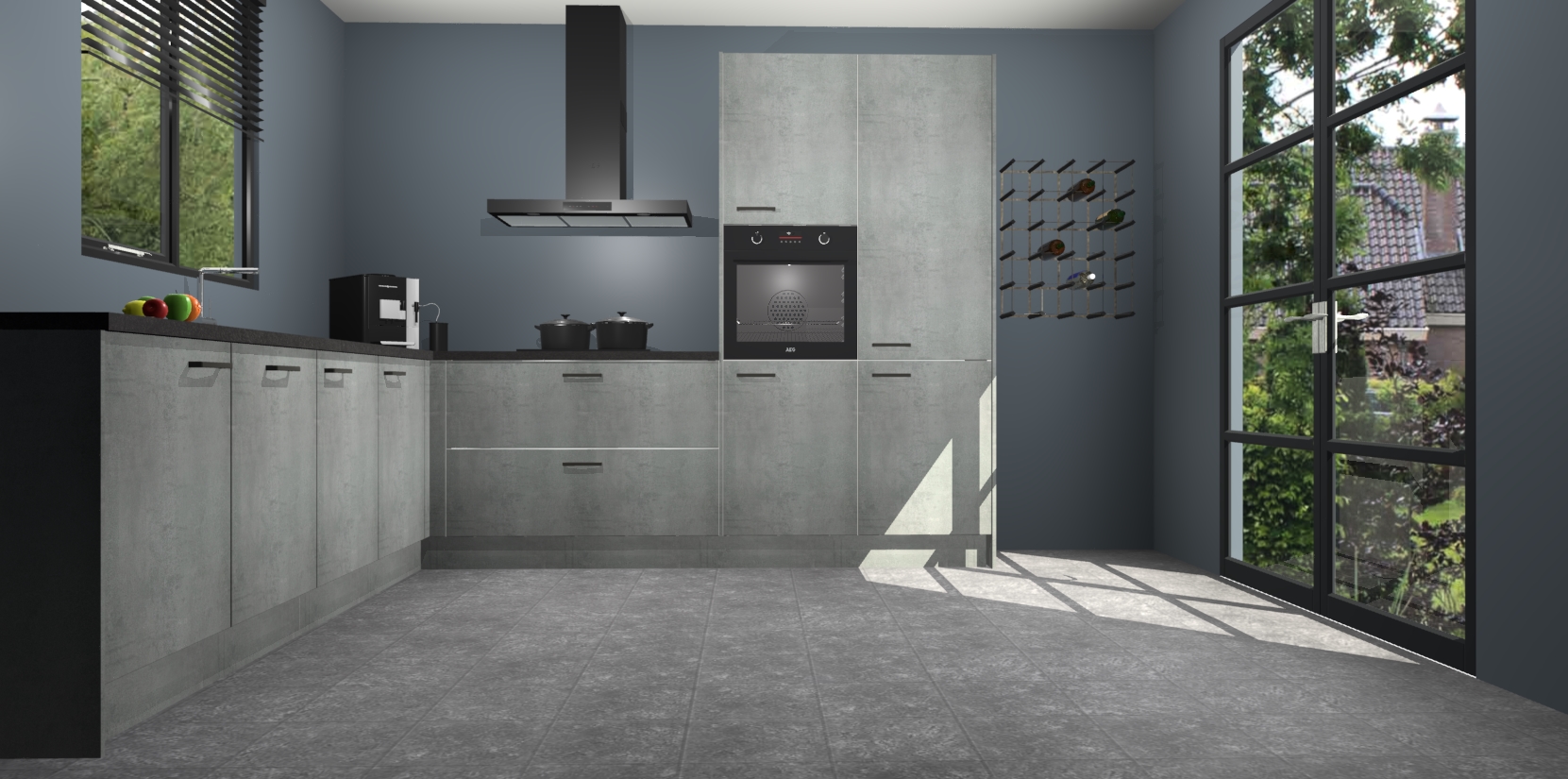 De Beton Parelgrijs keuken Porto heeft 5 ingebouwde apparaten - een oven, inductiekookplaat, afzuigkap, vaatwasser en koelkast - waarmee u in een handomdraai heerlijke gerechten bereidt. Soft-close deuren zorgen voor nog meer functionaliteit en gemak. En dit alles voor een onverslaanbaar vaste prijs. En als u nu bestelt, duurt de levering maar 7 weken! Wat nog ongelooflijker is, is dat onze kasten voor gemonteerd worden geleverd.