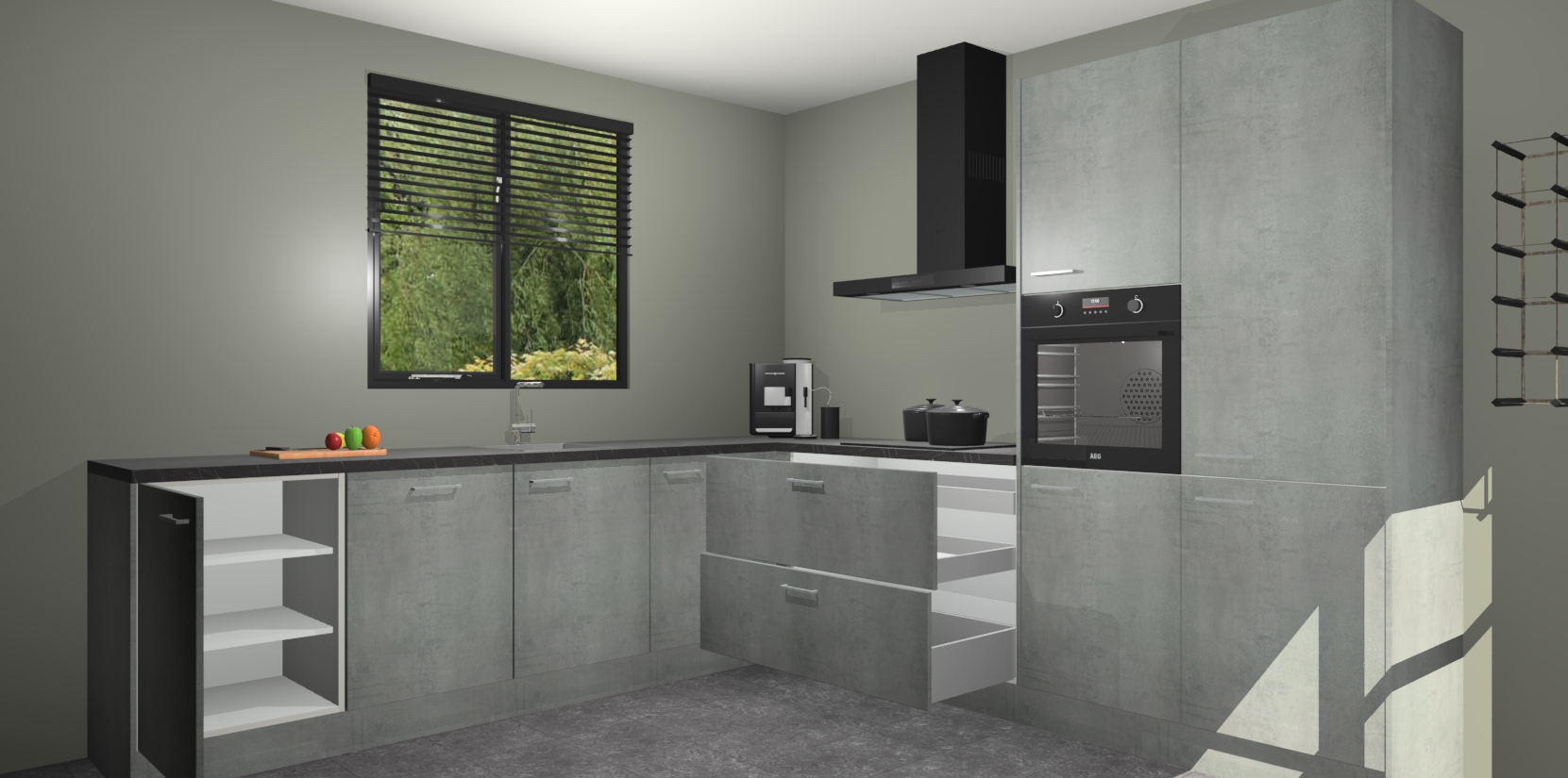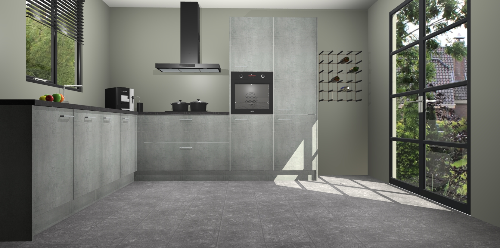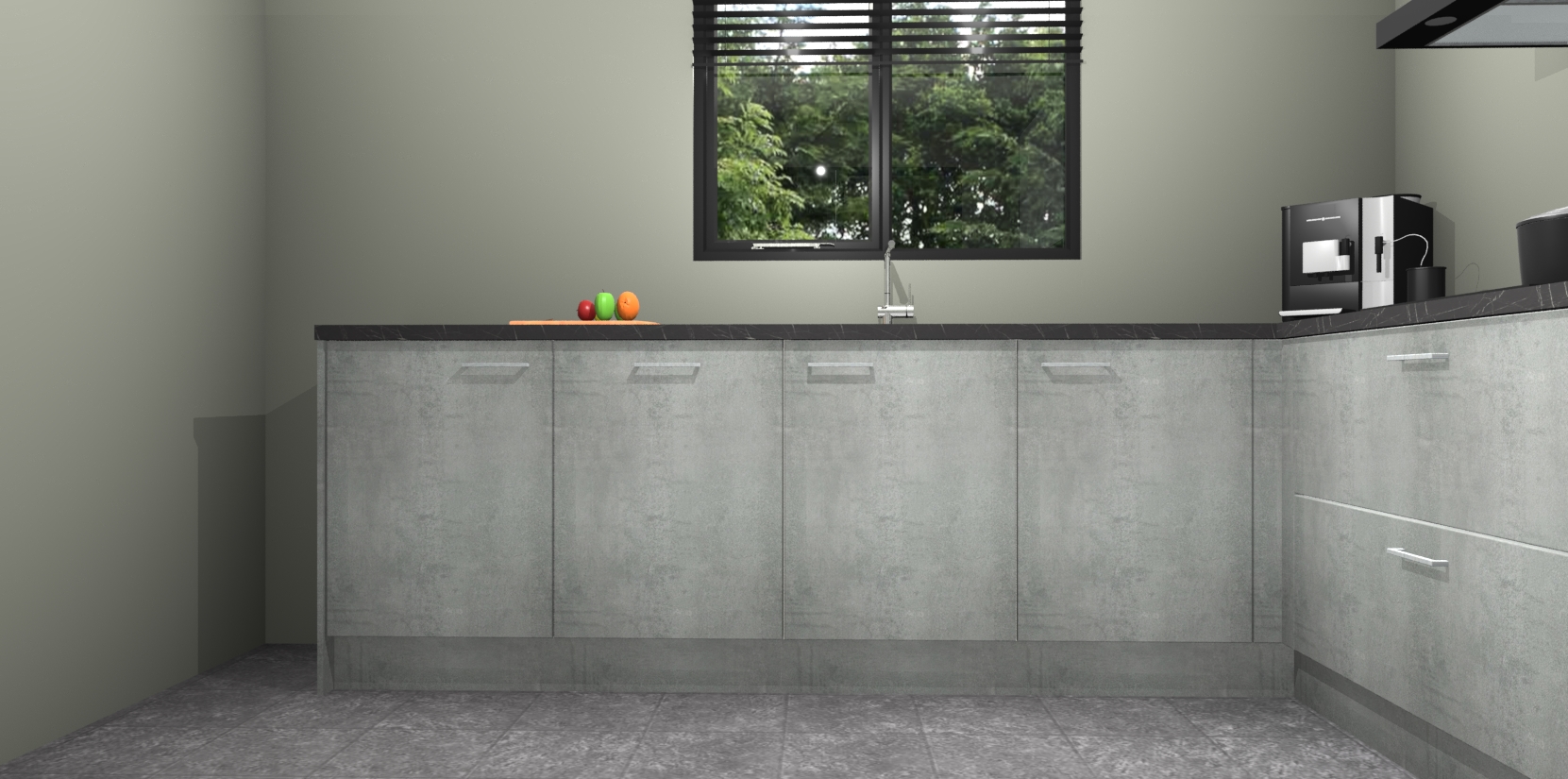 De Beton Parelgrijs keuken Porto heeft 5 ingebouwde apparaten - een oven, inductiekookplaat, afzuigkap, vaatwasser en koelkast - waarmee u in een handomdraai heerlijke gerechten bereidt. Soft-close deuren zorgen voor nog meer functionaliteit en gemak. En dit alles voor een onverslaanbaar vaste prijs. En als u nu bestelt, duurt de levering maar 7 weken! Wat nog ongelooflijker is, is dat onze kasten voor gemonteerd worden geleverd.