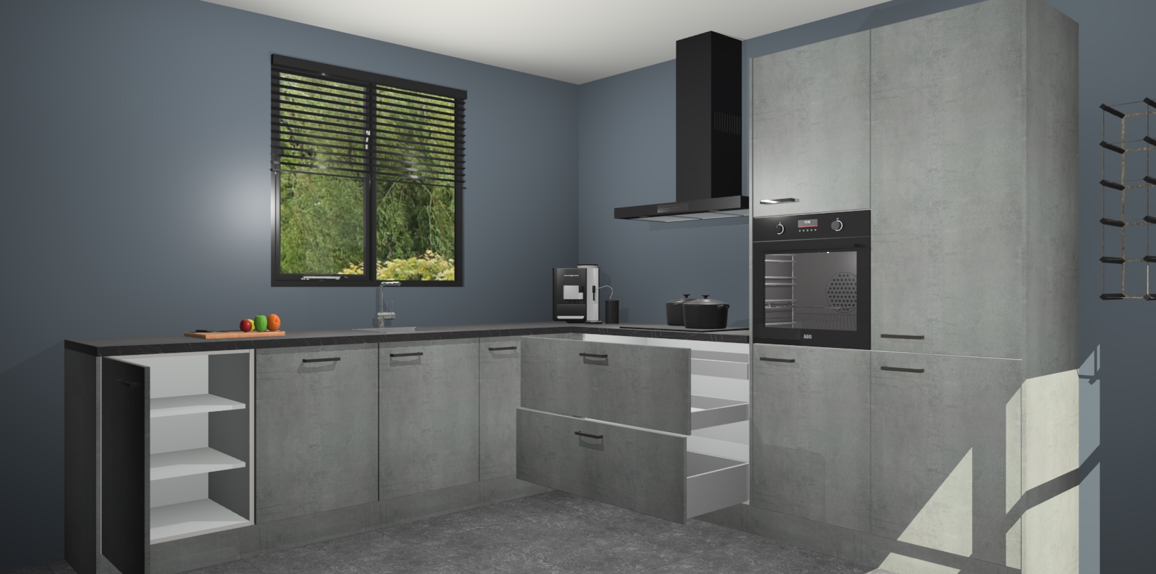 De Beton Parelgrijs keuken Porto heeft 5 ingebouwde apparaten - een oven, inductiekookplaat, afzuigkap, vaatwasser en koelkast - waarmee u in een handomdraai heerlijke gerechten bereidt. Soft-close deuren zorgen voor nog meer functionaliteit en gemak. En dit alles voor een onverslaanbaar vaste prijs. En als u nu bestelt, duurt de levering maar 7 weken! Wat nog ongelooflijker is, is dat onze kasten voor gemonteerd worden geleverd.