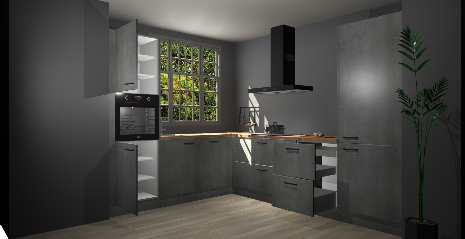 Met een modern, tijdloos design en ruime opslagruimte, zult u zich in no-time thuis voelen in uw nieuwe keuken. Uw leven wordt eenvoudiger met de soft-close deuren die voor het ultieme stille comfort zorgen - geen geluid dat u stoort terwijl u kookt. Ook is de keuken voorzien van 5 ingebouwde apparaten: een oven, inductie kookplaat, afzuigkap, vaatwasser en koelkast. Deze kunnen gemakkelijk na bestelling worden bijgewerkt naar AEG - waardoor uw luxe ervaring compleet is.