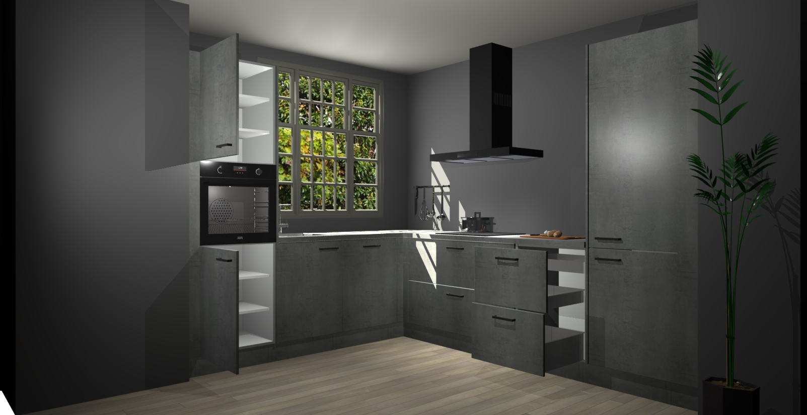 Met een modern, tijdloos design en ruime opslagruimte, zult u zich in no-time thuis voelen in uw nieuwe keuken. Uw leven wordt eenvoudiger met de soft-close deuren die voor het ultieme stille comfort zorgen - geen geluid dat u stoort terwijl u kookt. Ook is de keuken voorzien van 5 ingebouwde apparaten: een oven, inductie kookplaat, afzuigkap, vaatwasser en koelkast. Deze kunnen gemakkelijk na bestelling worden bijgewerkt naar AEG - waardoor uw luxe ervaring compleet is.