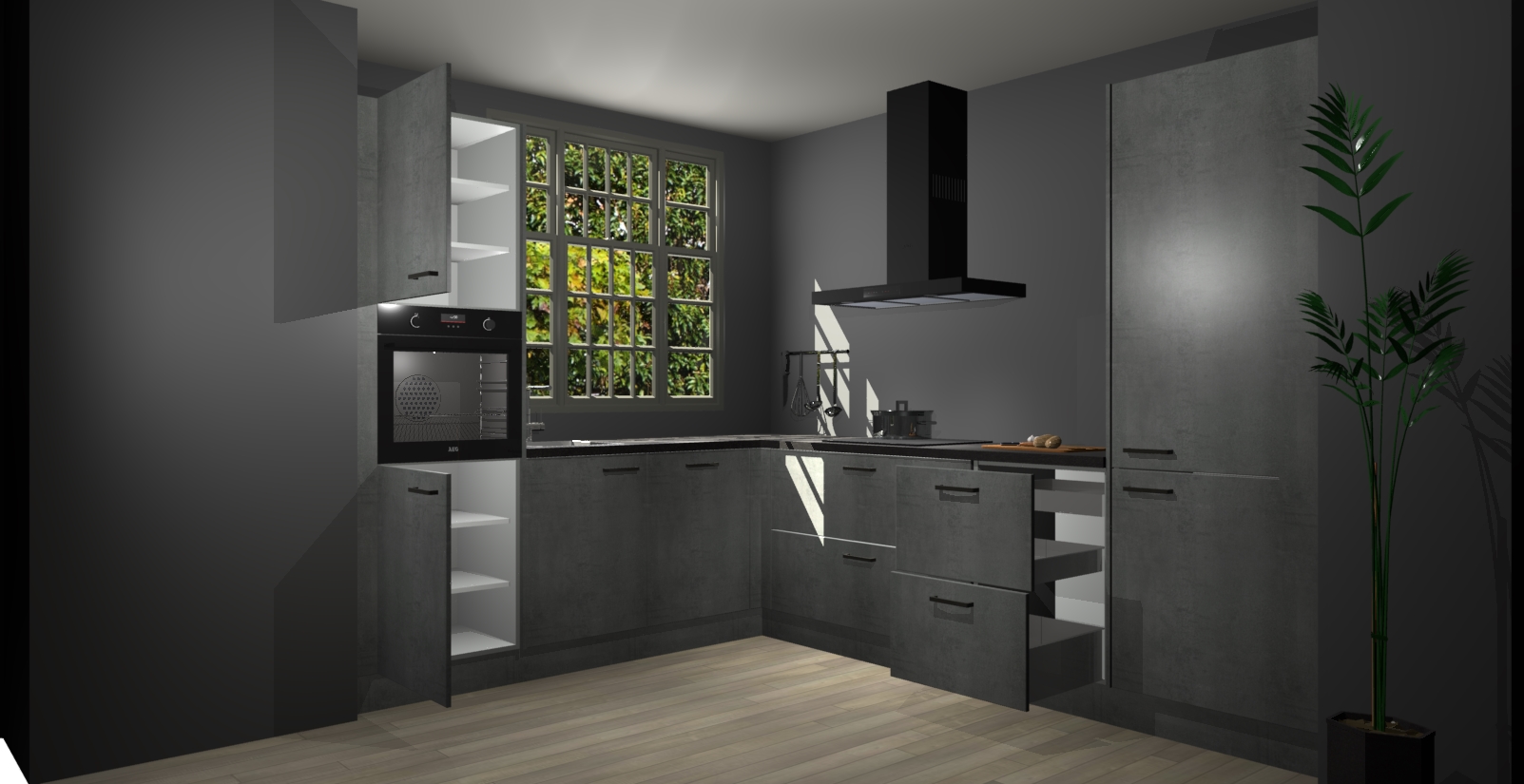Met een modern, tijdloos design en ruime opslagruimte, zult u zich in no-time thuis voelen in uw nieuwe keuken. Uw leven wordt eenvoudiger met de soft-close deuren die voor het ultieme stille comfort zorgen - geen geluid dat u stoort terwijl u kookt. Ook is de keuken voorzien van 5 ingebouwde apparaten: een oven, inductie kookplaat, afzuigkap, vaatwasser en koelkast. Deze kunnen gemakkelijk na bestelling worden bijgewerkt naar AEG - waardoor uw luxe ervaring compleet is.