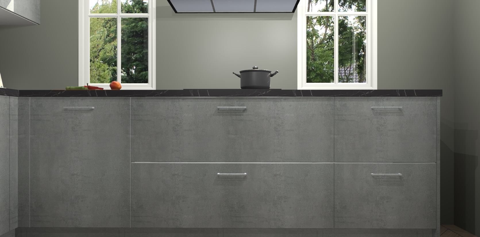 En met onze scherpe prijzen hoeft u niet in te leveren op kwaliteit. Beton parelgrijs keuken Regina is de perfecte combinatie van functioneel en betaalbaar, dus waarom zou u ergens anders zoeken naar de keuken van uw dromen?