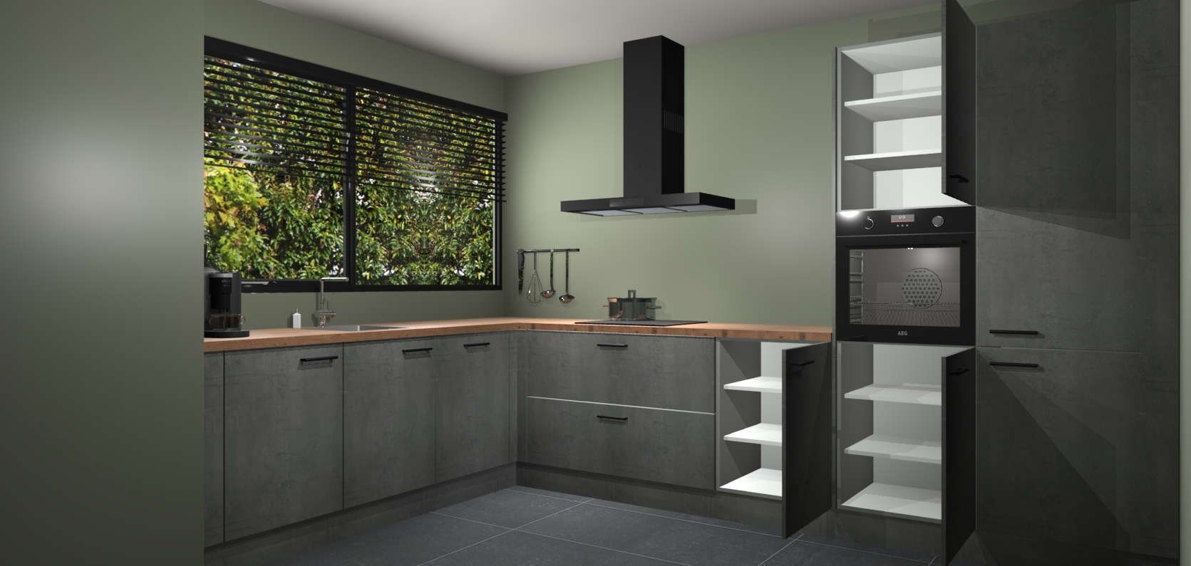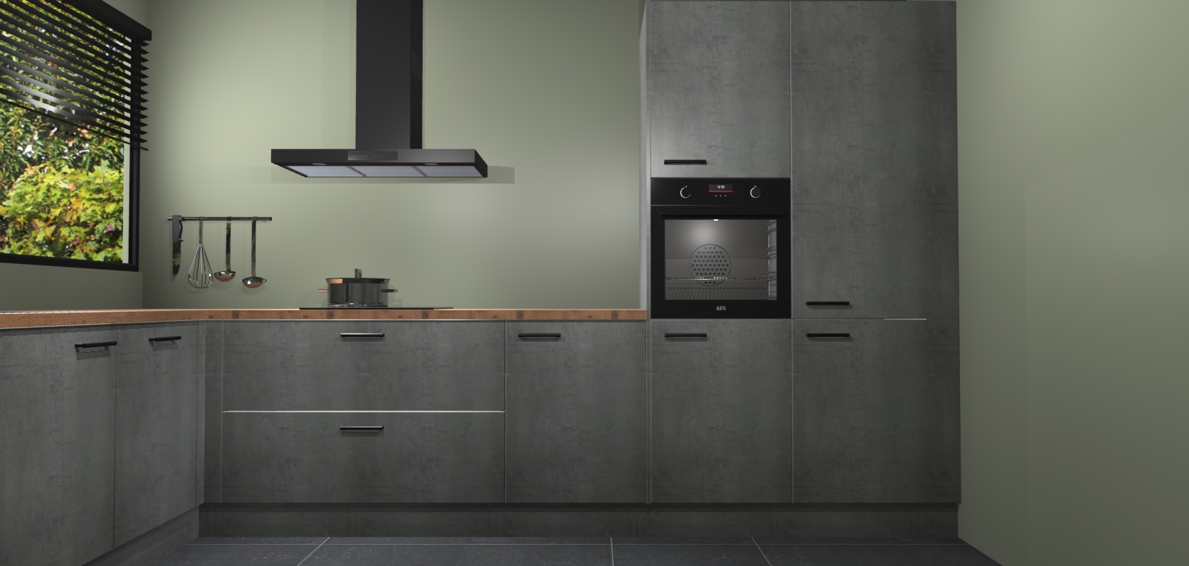 Met een modern, tijdloos design en ruime opslagruimte, zult u zich in no-time thuis voelen in uw nieuwe keuken. Uw leven wordt eenvoudiger met de soft-close deuren die voor het ultieme stille comfort zorgen - geen geluid dat u stoort terwijl u kookt. Ook is de keuken voorzien van 5 ingebouwde apparaten: een oven, inductie kookplaat, afzuigkap, vaatwasser en koelkast. Deze kunnen gemakkelijk na bestelling worden bijgewerkt naar AEG - waardoor uw luxe ervaring compleet is.