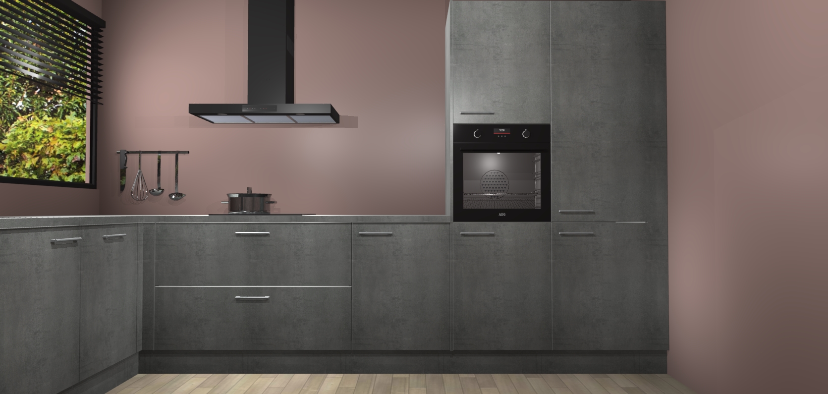 Met een modern, tijdloos design en ruime opslagruimte, zult u zich in no-time thuis voelen in uw nieuwe keuken. Uw leven wordt eenvoudiger met de soft-close deuren die voor het ultieme stille comfort zorgen - geen geluid dat u stoort terwijl u kookt. Ook is de keuken voorzien van 5 ingebouwde apparaten: een oven, inductie kookplaat, afzuigkap, vaatwasser en koelkast. Deze kunnen gemakkelijk na bestelling worden bijgewerkt naar AEG - waardoor uw luxe ervaring compleet is.
