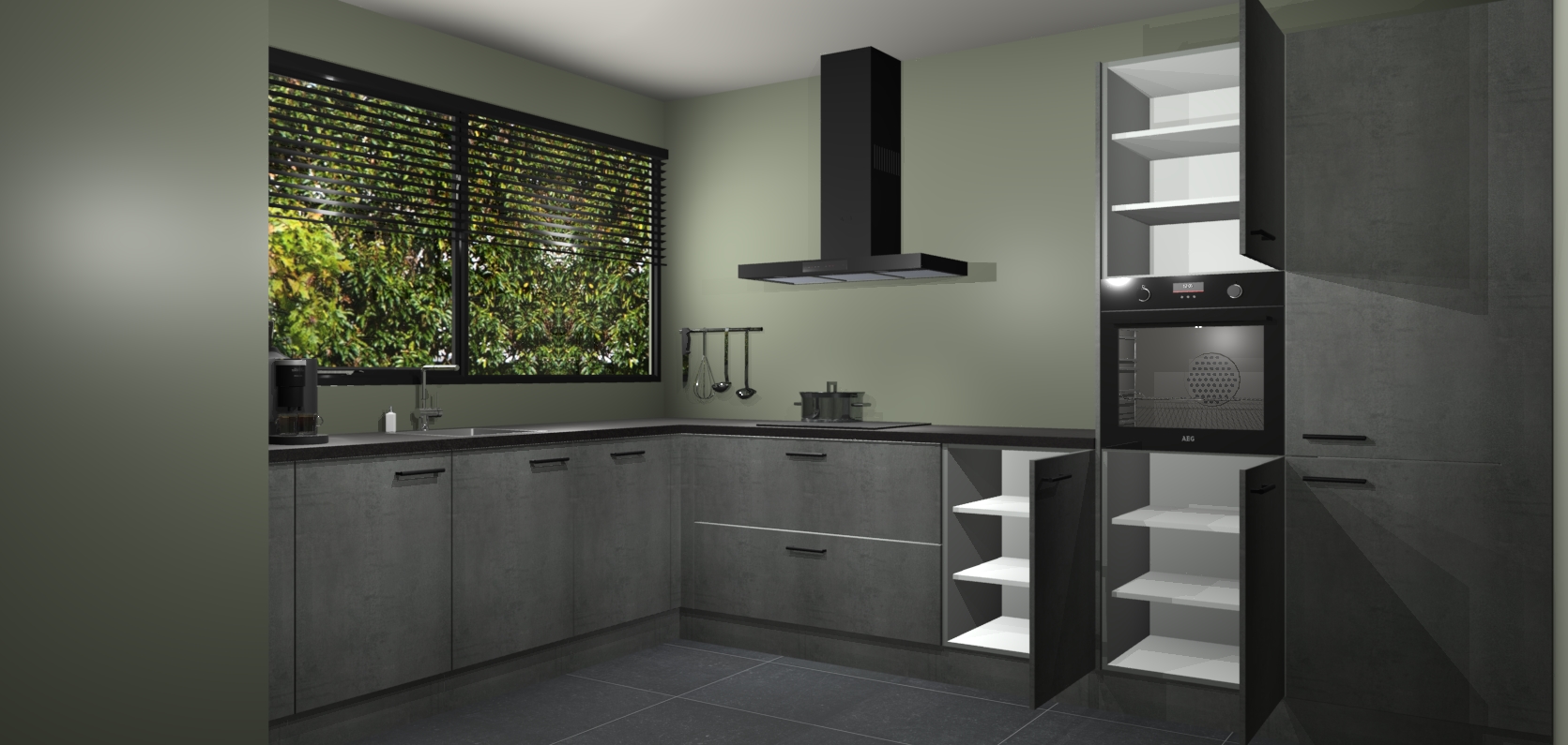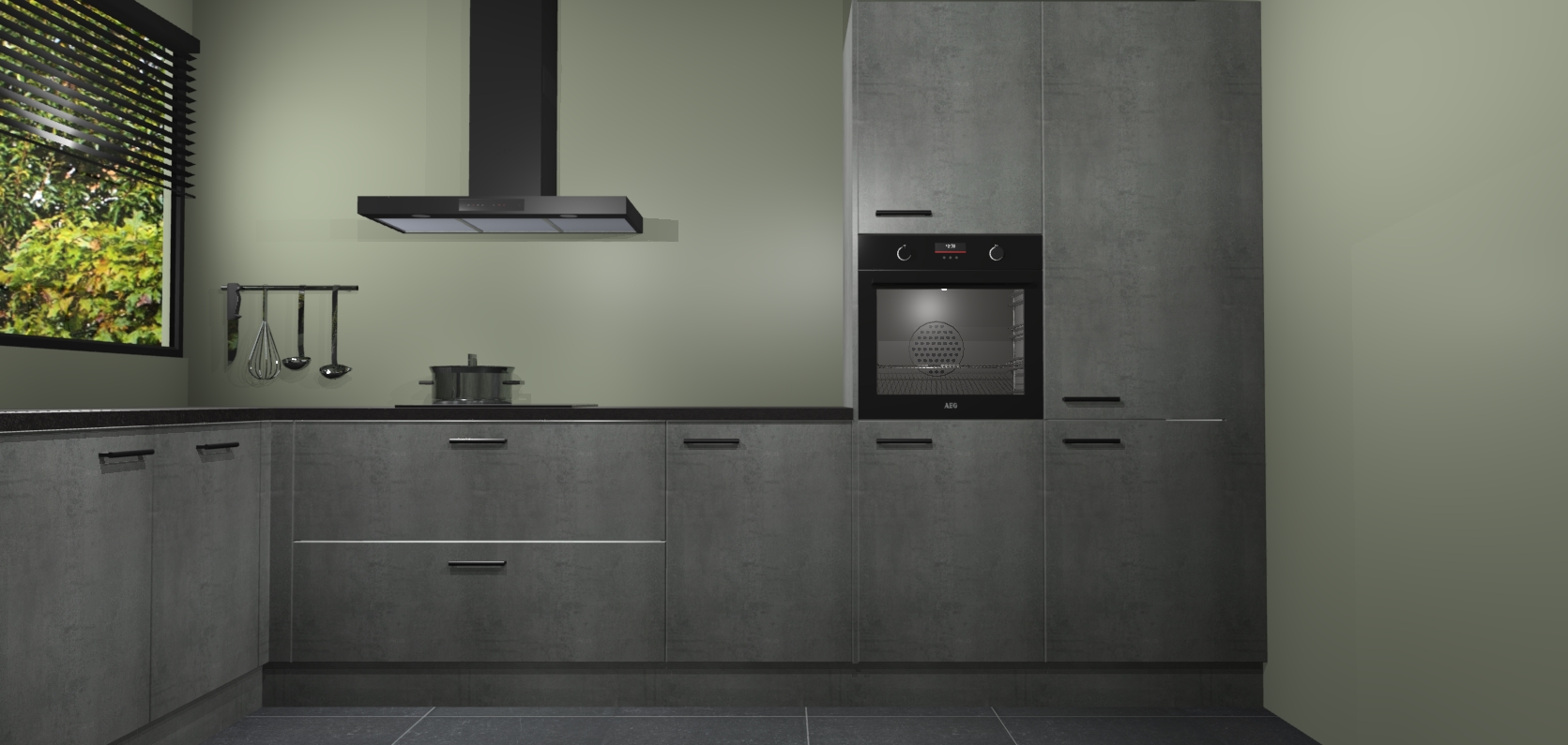 Met een modern, tijdloos design en ruime opslagruimte, zult u zich in no-time thuis voelen in uw nieuwe keuken. Uw leven wordt eenvoudiger met de soft-close deuren die voor het ultieme stille comfort zorgen - geen geluid dat u stoort terwijl u kookt. Ook is de keuken voorzien van 5 ingebouwde apparaten: een oven, inductie kookplaat, afzuigkap, vaatwasser en koelkast. Deze kunnen gemakkelijk na bestelling worden bijgewerkt naar AEG - waardoor uw luxe ervaring compleet is.