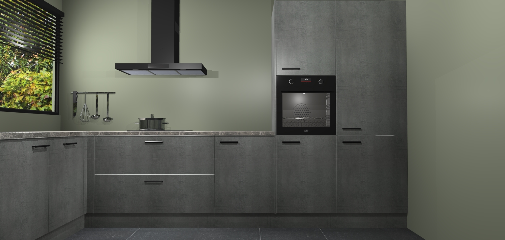 Met een modern, tijdloos design en ruime opslagruimte, zult u zich in no-time thuis voelen in uw nieuwe keuken. Uw leven wordt eenvoudiger met de soft-close deuren die voor het ultieme stille comfort zorgen - geen geluid dat u stoort terwijl u kookt. Ook is de keuken voorzien van 5 ingebouwde apparaten: een oven, inductie kookplaat, afzuigkap, vaatwasser en koelkast. Deze kunnen gemakkelijk na bestelling worden bijgewerkt naar AEG - waardoor uw luxe ervaring compleet is.