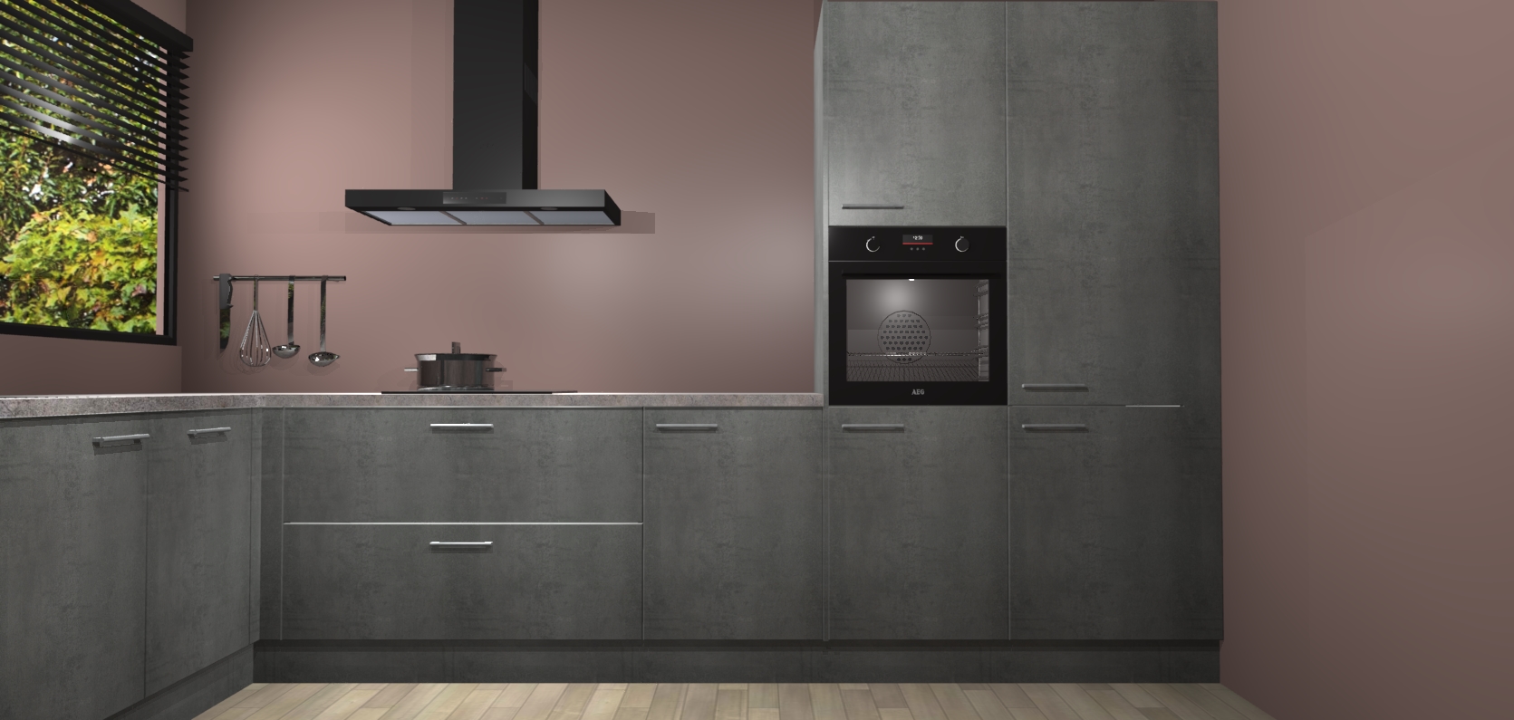 Met een modern, tijdloos design en ruime opslagruimte, zult u zich in no-time thuis voelen in uw nieuwe keuken. Uw leven wordt eenvoudiger met de soft-close deuren die voor het ultieme stille comfort zorgen - geen geluid dat u stoort terwijl u kookt. Ook is de keuken voorzien van 5 ingebouwde apparaten: een oven, inductie kookplaat, afzuigkap, vaatwasser en koelkast. Deze kunnen gemakkelijk na bestelling worden bijgewerkt naar AEG - waardoor uw luxe ervaring compleet is.
