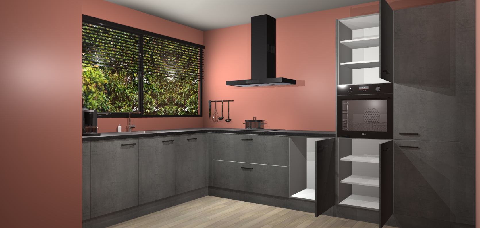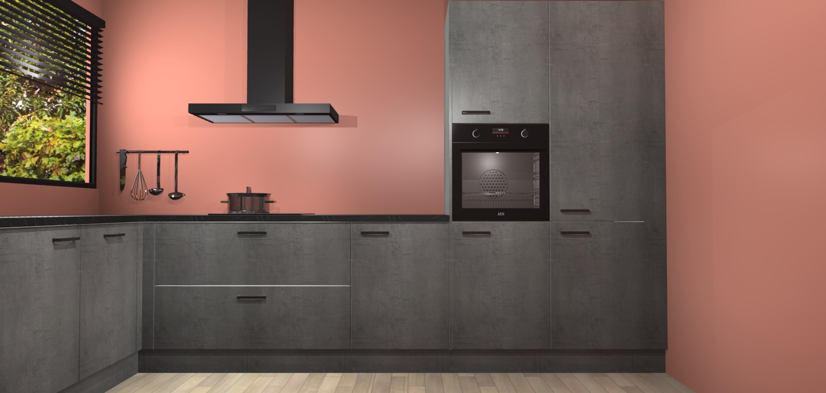 Met een modern, tijdloos design en ruime opslagruimte, zult u zich in no-time thuis voelen in uw nieuwe keuken. Uw leven wordt eenvoudiger met de soft-close deuren die voor het ultieme stille comfort zorgen - geen geluid dat u stoort terwijl u kookt. Ook is de keuken voorzien van 5 ingebouwde apparaten: een oven, inductie kookplaat, afzuigkap, vaatwasser en koelkast. Deze kunnen gemakkelijk na bestelling worden bijgewerkt naar AEG - waardoor uw luxe ervaring compleet is.