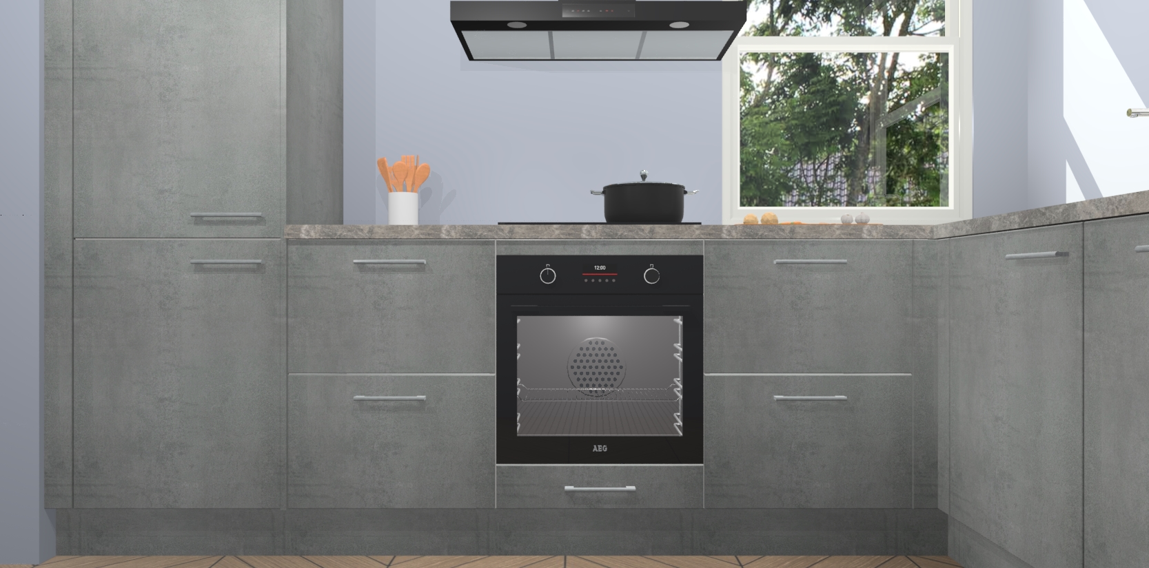 Wat maakt deze keuken zo bijzonder? Ten eerste geeft het houten werkblad uw ruimte een onmiskenbaar klassieke uitstraling. De natuurlijke afwerking roept warmte en elegantie op die nooit uit de mode zullen raken. Bovendien is het gemakkelijk schoon te houden en te onderhouden, zodat je er jarenlang plezier van kunt hebben. Als u op zoek bent naar extra gemak in uw keuken, dan heeft u bij het plaatsen van een bestelling bij ons ook de optie om uw toestellen te upgraden naar AEG-modellen - zo haalt u moderne innovatie van topmerken in apparatentechnologie rechtstreeks in huis.