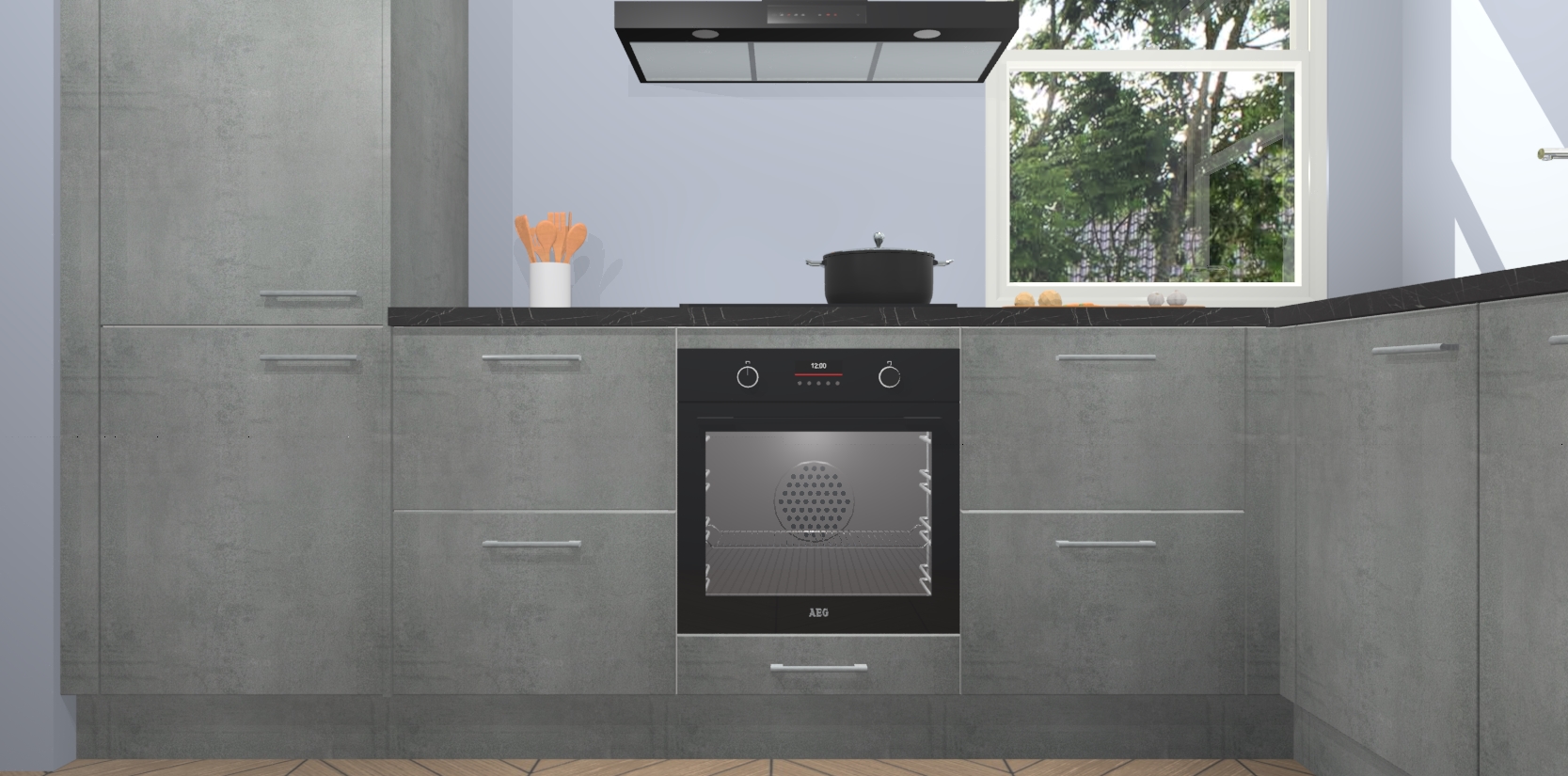 Wat maakt deze keuken zo bijzonder? Ten eerste geeft het houten werkblad uw ruimte een onmiskenbaar klassieke uitstraling. De natuurlijke afwerking roept warmte en elegantie op die nooit uit de mode zullen raken. Bovendien is het gemakkelijk schoon te houden en te onderhouden, zodat je er jarenlang plezier van kunt hebben. Als u op zoek bent naar extra gemak in uw keuken, dan heeft u bij het plaatsen van een bestelling bij ons ook de optie om uw toestellen te upgraden naar AEG-modellen - zo haalt u moderne innovatie van topmerken in apparatentechnologie rechtstreeks in huis.