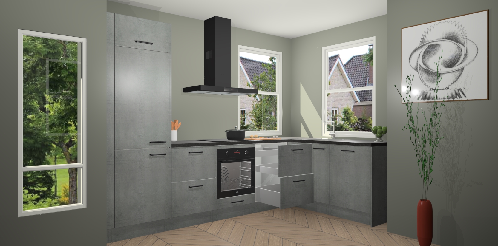 Welkom bij de Beton Parelgrijs keuken Salzburg! Met een chique combinatie van een prachtig houten werkblad, klassiek design en altijd concurrerende prijzen is de Beton Parelgrijs keuken Salzburg de keuken van uw dromen! Deze keuken is perfect voor alle huisformaten en decorstijlen en straalt stijl en verfijning uit. Van het tijdloze design tot de functionele functies, er is geen betere manier om de look van uw woon- of kookruimte te verbeteren.
