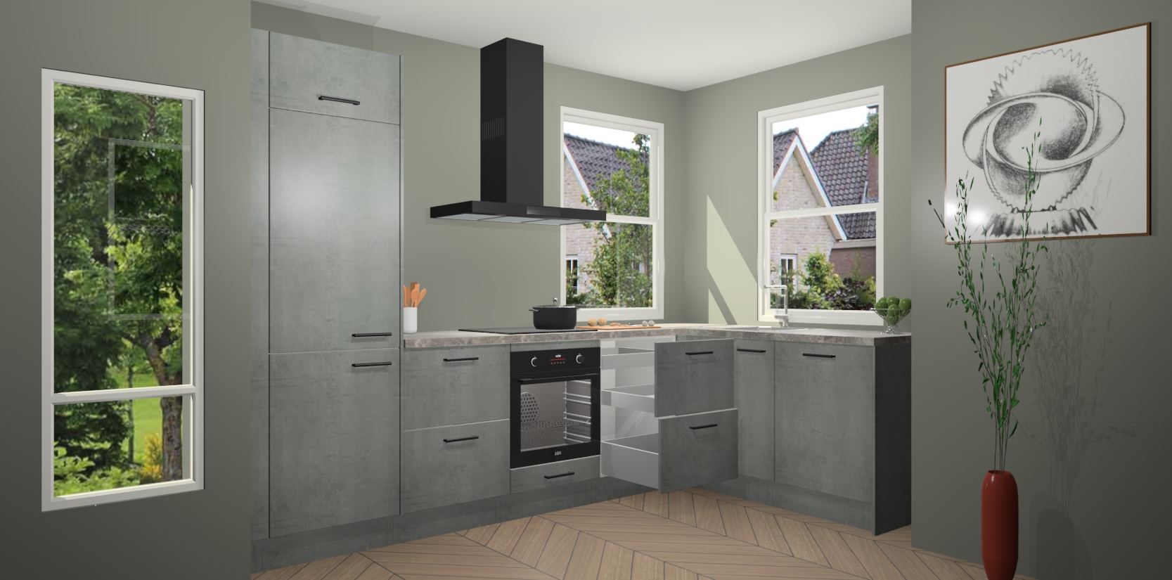 Welkom bij de Beton Parelgrijs keuken Salzburg! Met een chique combinatie van een prachtig houten werkblad, klassiek design en altijd concurrerende prijzen is de Beton Parelgrijs keuken Salzburg de keuken van uw dromen! Deze keuken is perfect voor alle huisformaten en decorstijlen en straalt stijl en verfijning uit. Van het tijdloze design tot de functionele functies, er is geen betere manier om de look van uw woon- of kookruimte te verbeteren.