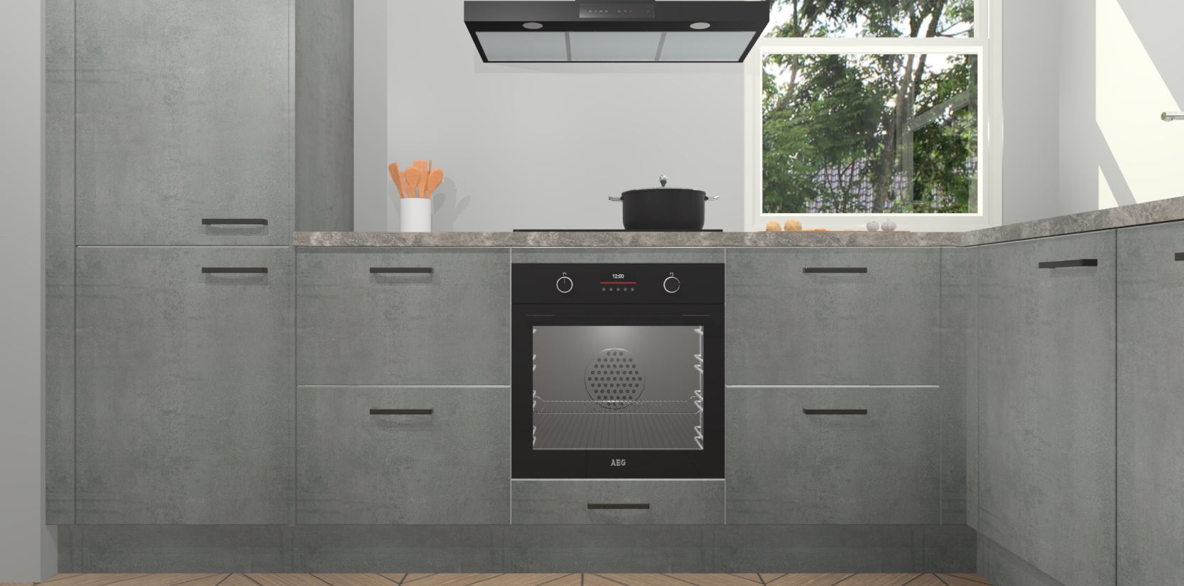 Wat maakt deze keuken zo bijzonder? Ten eerste geeft het houten werkblad uw ruimte een onmiskenbaar klassieke uitstraling. De natuurlijke afwerking roept warmte en elegantie op die nooit uit de mode zullen raken. Bovendien is het gemakkelijk schoon te houden en te onderhouden, zodat je er jarenlang plezier van kunt hebben. Als u op zoek bent naar extra gemak in uw keuken, dan heeft u bij het plaatsen van een bestelling bij ons ook de optie om uw toestellen te upgraden naar AEG-modellen - zo haalt u moderne innovatie van topmerken in apparatentechnologie rechtstreeks in huis.