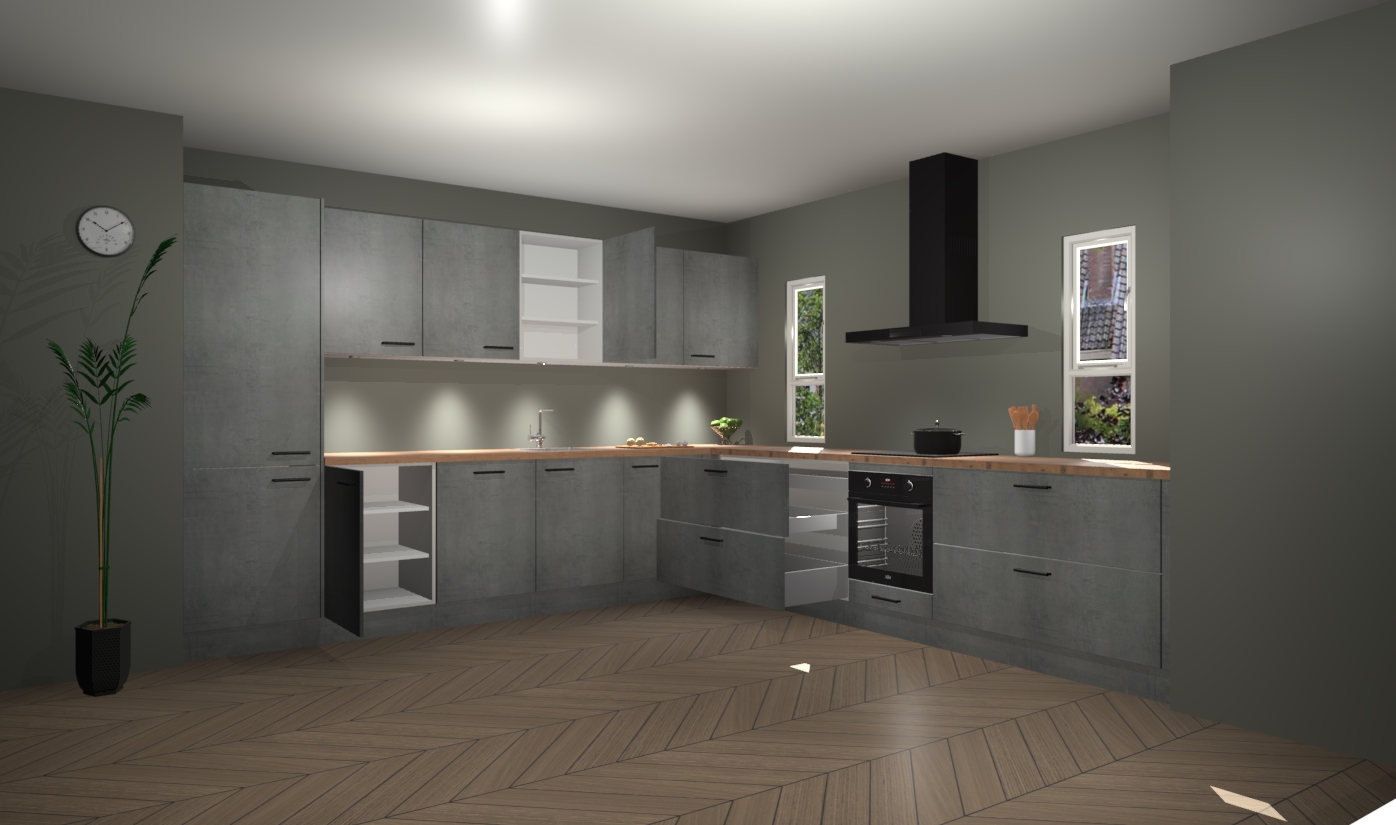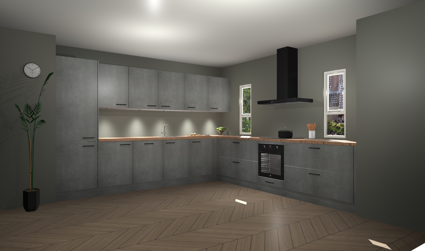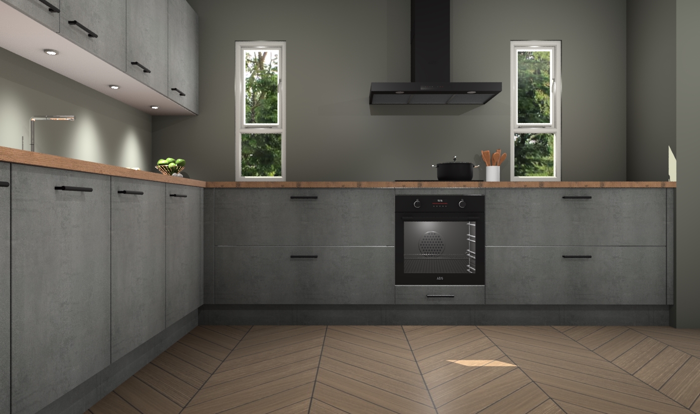 De beton parelgrijs keuken is een ideale hoekkeuken en heeft alle functies en apparatuur die u maar nodig kunt hebben. Bij de bestelling krijgt u een oven, inductiekookplaat, afzuigkap, vaatwasser en koelkast - deze kunnen desgewenst eenvoudig worden uitgebreid naar AEG na bestellen. Elke kast wordt ook voor gemonteerd geleverd met soft close deuren die jarenlang gebruik beloven. Stelt u zich voor dat u geen gedoe heeft met vervelende montage - vanaf het moment dat u uw bestelling plaats, duurt het slechts 7 weken voor het bij u thuis geleverd wordt.