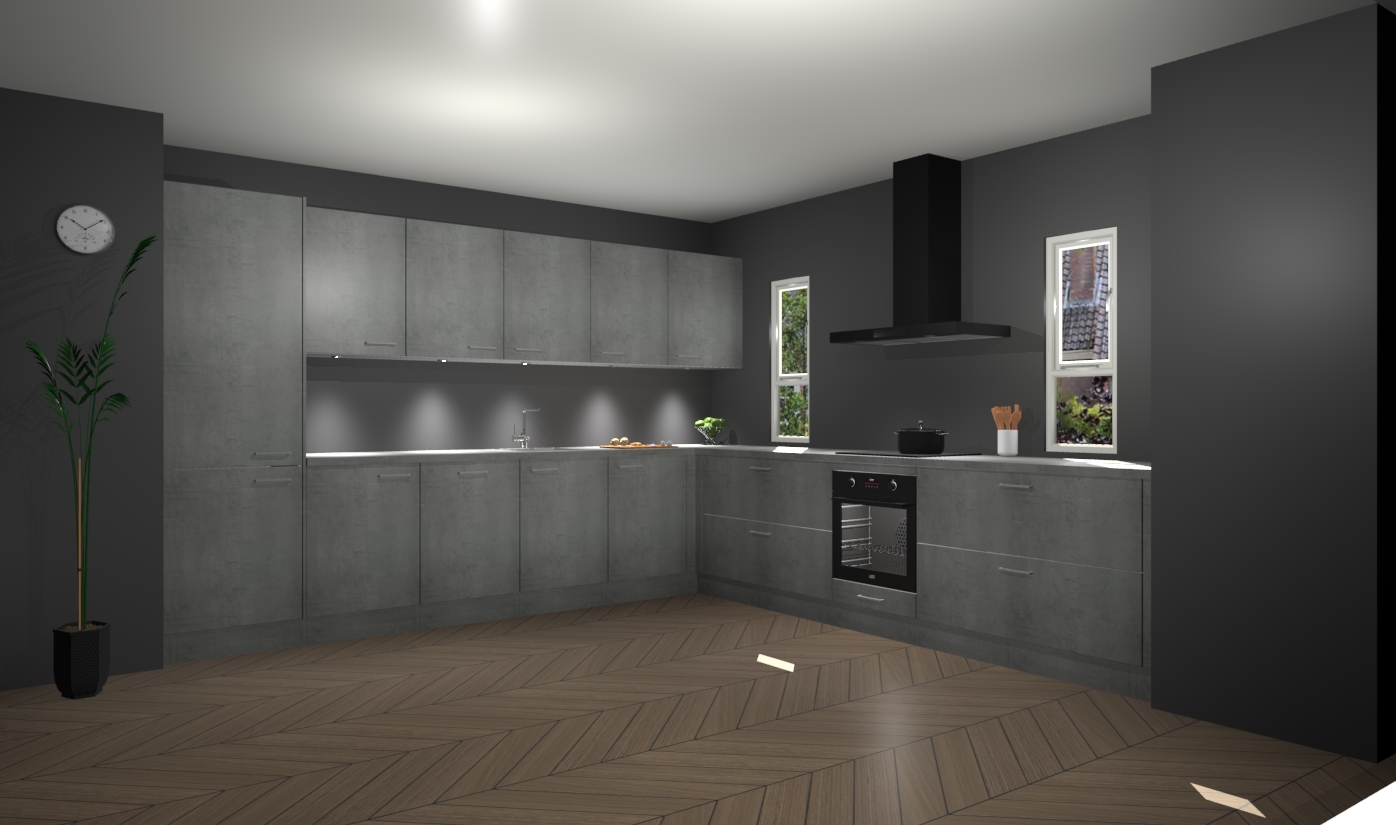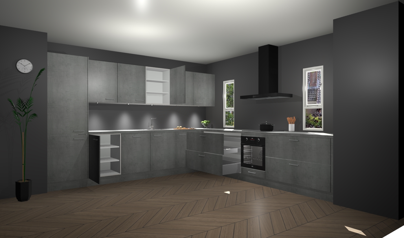 De beton parelgrijs keuken is een ideale hoekkeuken en heeft alle functies en apparatuur die u maar nodig kunt hebben. Bij de bestelling krijgt u een oven, inductiekookplaat, afzuigkap, vaatwasser en koelkast - deze kunnen desgewenst eenvoudig worden uitgebreid naar AEG na bestellen. Elke kast wordt ook voor gemonteerd geleverd met soft close deuren die jarenlang gebruik beloven. Stelt u zich voor dat u geen gedoe heeft met vervelende montage - vanaf het moment dat u uw bestelling plaats, duurt het slechts 7 weken voor het bij u thuis geleverd wordt.