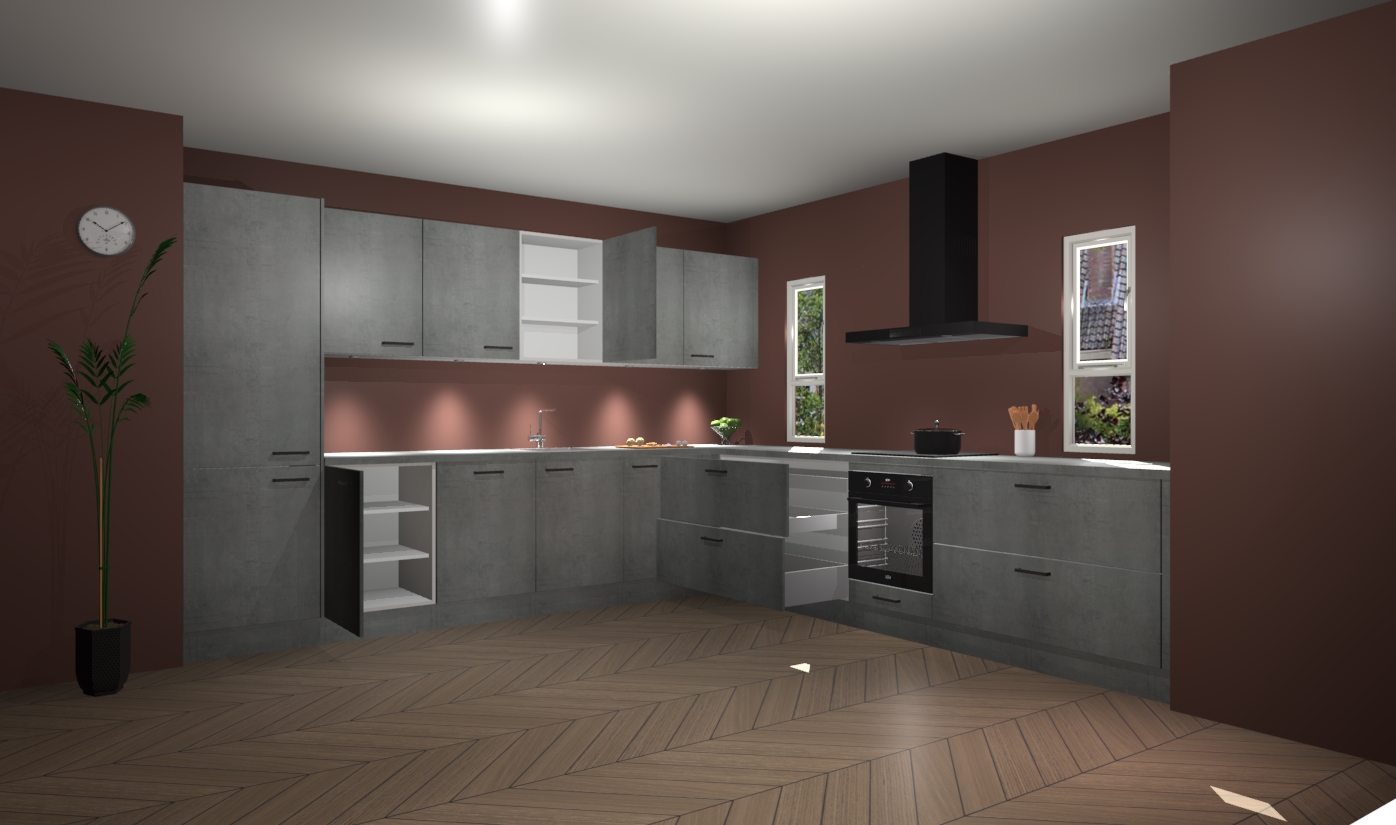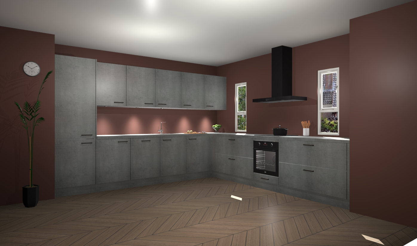 De beton parelgrijs keuken is een ideale hoekkeuken en heeft alle functies en apparatuur die u maar nodig kunt hebben. Bij de bestelling krijgt u een oven, inductiekookplaat, afzuigkap, vaatwasser en koelkast - deze kunnen desgewenst eenvoudig worden uitgebreid naar AEG na bestellen. Elke kast wordt ook voor gemonteerd geleverd met soft close deuren die jarenlang gebruik beloven. Stelt u zich voor dat u geen gedoe heeft met vervelende montage - vanaf het moment dat u uw bestelling plaats, duurt het slechts 7 weken voor het bij u thuis geleverd wordt.