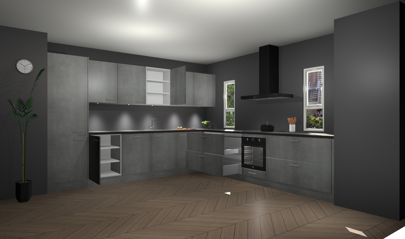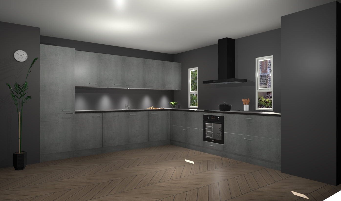 De beton parelgrijs keuken is een ideale hoekkeuken en heeft alle functies en apparatuur die u maar nodig kunt hebben. Bij de bestelling krijgt u een oven, inductiekookplaat, afzuigkap, vaatwasser en koelkast - deze kunnen desgewenst eenvoudig worden uitgebreid naar AEG na bestellen. Elke kast wordt ook voor gemonteerd geleverd met soft close deuren die jarenlang gebruik beloven. Stelt u zich voor dat u geen gedoe heeft met vervelende montage - vanaf het moment dat u uw bestelling plaats, duurt het slechts 7 weken voor het bij u thuis geleverd wordt.