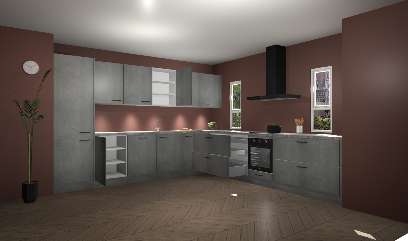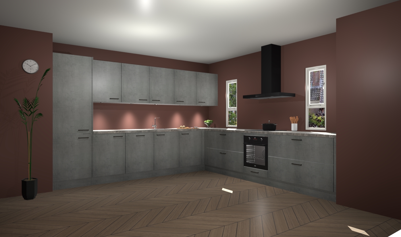 De beton parelgrijs keuken is een ideale hoekkeuken en heeft alle functies en apparatuur die u maar nodig kunt hebben. Bij de bestelling krijgt u een oven, inductiekookplaat, afzuigkap, vaatwasser en koelkast - deze kunnen desgewenst eenvoudig worden uitgebreid naar AEG na bestellen. Elke kast wordt ook voor gemonteerd geleverd met soft close deuren die jarenlang gebruik beloven. Stelt u zich voor dat u geen gedoe heeft met vervelende montage - vanaf het moment dat u uw bestelling plaats, duurt het slechts 7 weken voor het bij u thuis geleverd wordt.