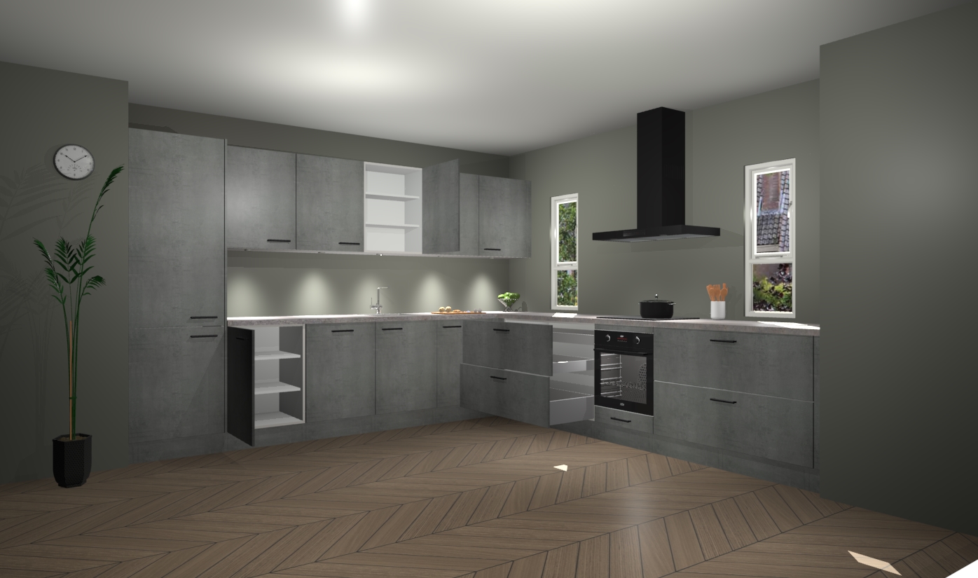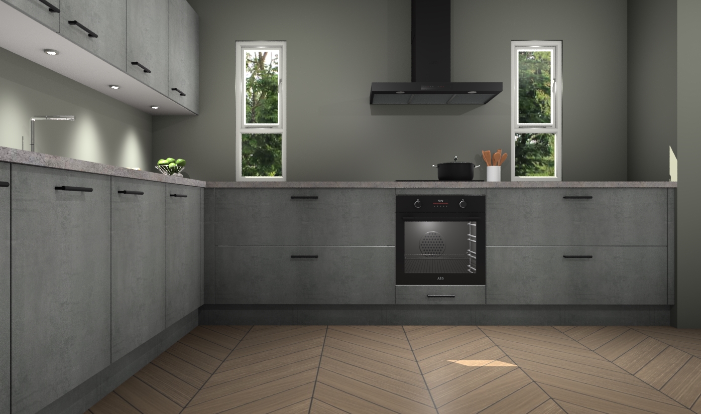 De beton parelgrijs keuken is een ideale hoekkeuken en heeft alle functies en apparatuur die u maar nodig kunt hebben. Bij de bestelling krijgt u een oven, inductiekookplaat, afzuigkap, vaatwasser en koelkast - deze kunnen desgewenst eenvoudig worden uitgebreid naar AEG na bestellen. Elke kast wordt ook voor gemonteerd geleverd met soft close deuren die jarenlang gebruik beloven. Stelt u zich voor dat u geen gedoe heeft met vervelende montage - vanaf het moment dat u uw bestelling plaats, duurt het slechts 7 weken voor het bij u thuis geleverd wordt.