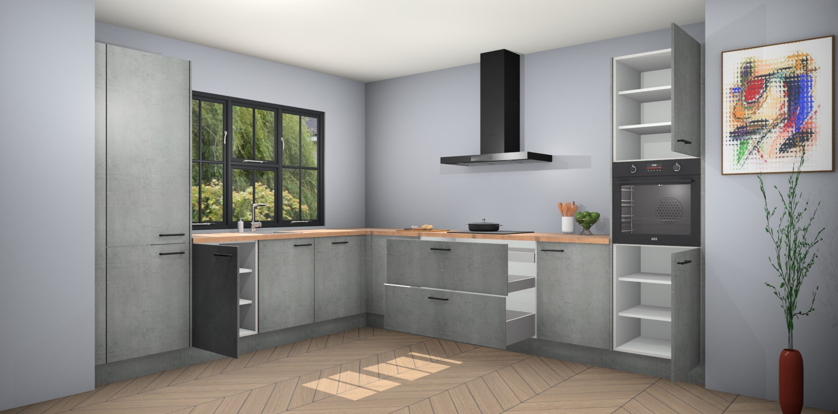 In deze box zijn alle kleuren verzameld van de deuren en werkbladen. Vraag de gratis kleurenbox aan en kijk thuis rustig verder!