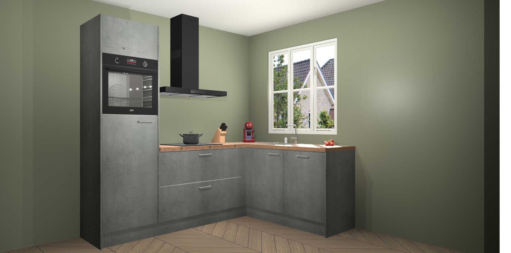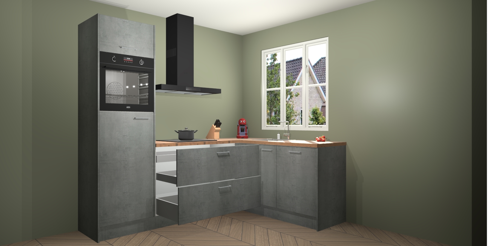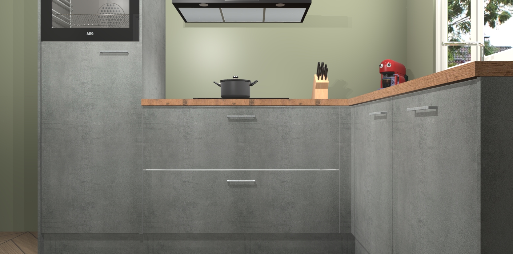 Dit model biedt u voldoende opbergruimte en vijf ingebouwde apparaten: een oven, inductiekookplaat, afzuigkap, vaatwasser en koelkast. Deze apparaten kunnen gemakkelijk worden geüpgrade naar AEG nadat u besteld heeft. De verschillende laden en kastjes bevatten softclose-deuren waardoor ze gezellig dichtvallen met een geruststellend helemaal geruisloos geluid. En dat is nog niet alles! We garanderen ook dat de prijs altijd laag blijft - dus haal nu uw Beton Parelgrijs keuken Victoria terwijl het kan.