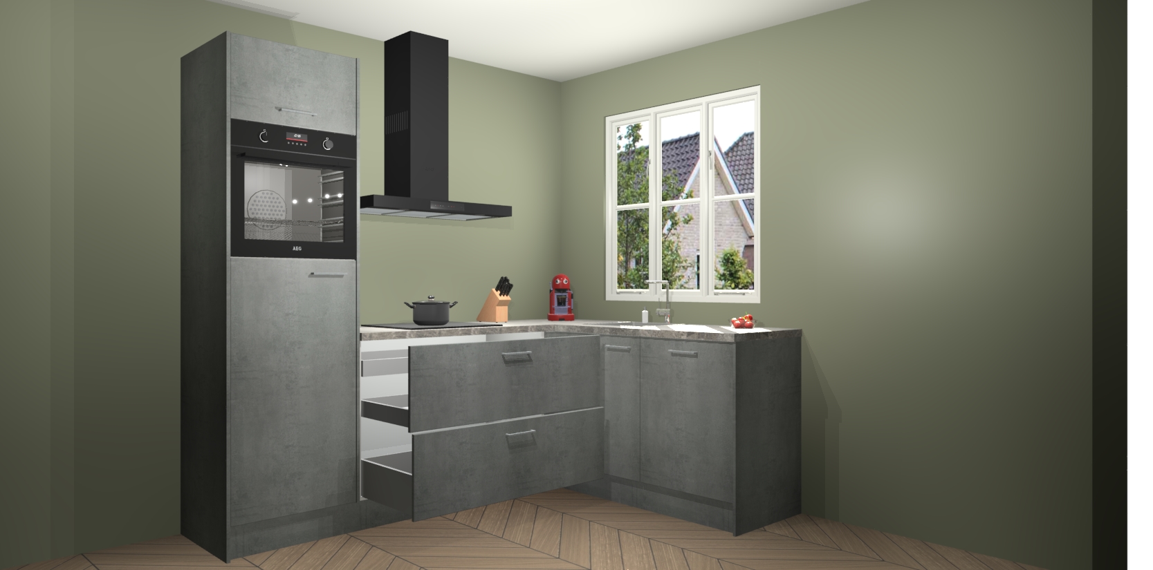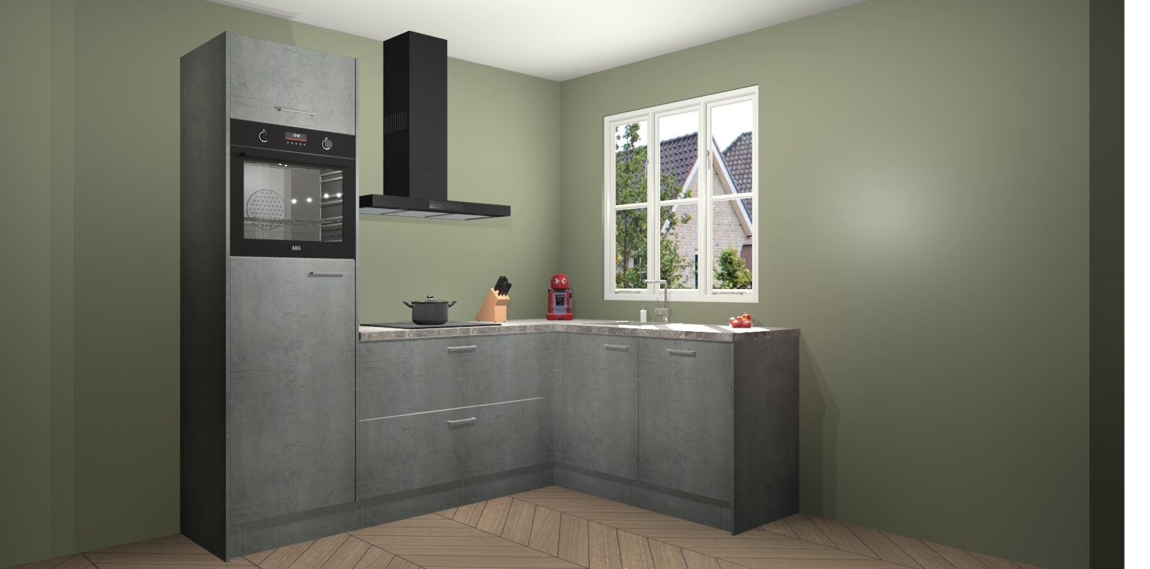 Dit model biedt u voldoende opbergruimte en vijf ingebouwde apparaten: een oven, inductiekookplaat, afzuigkap, vaatwasser en koelkast. Deze apparaten kunnen gemakkelijk worden geüpgrade naar AEG nadat u besteld heeft. De verschillende laden en kastjes bevatten softclose-deuren waardoor ze gezellig dichtvallen met een geruststellend helemaal geruisloos geluid. En dat is nog niet alles! We garanderen ook dat de prijs altijd laag blijft - dus haal nu uw Beton Parelgrijs keuken Victoria terwijl het kan.