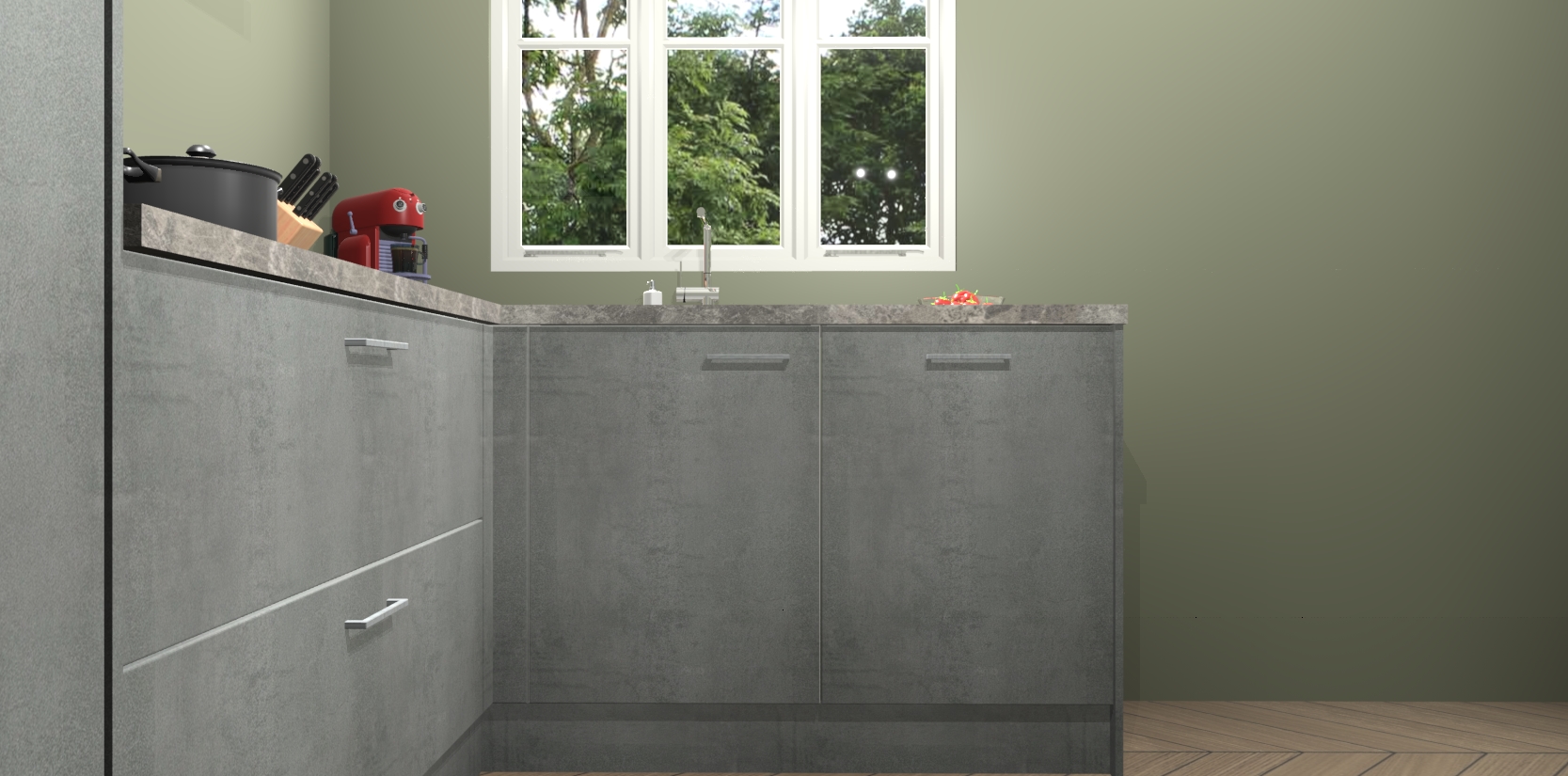 Bestellen was nog nooit zo makkelijk en we leveren met slechts 7 weken; zodra de keuken arriveert staan de kasten voor gemonteerd klaar om er alles aan te doen dat u hem gemakkelijk zelf kunt installeren! Eén ding is zeker: met de Beton Parelgrijs keuken Victoria slaagt u erin modischer, modernere keukens uit te rusten die tientallen jaren meegaan! Haal snel uw Beton Parelgrijs keuken Victoria - of u nu net begint of al 'levenservaring' hebt in de keukendroomloopbaan - want dit topmodel van onze collectie wilt u absoluut niet missen.