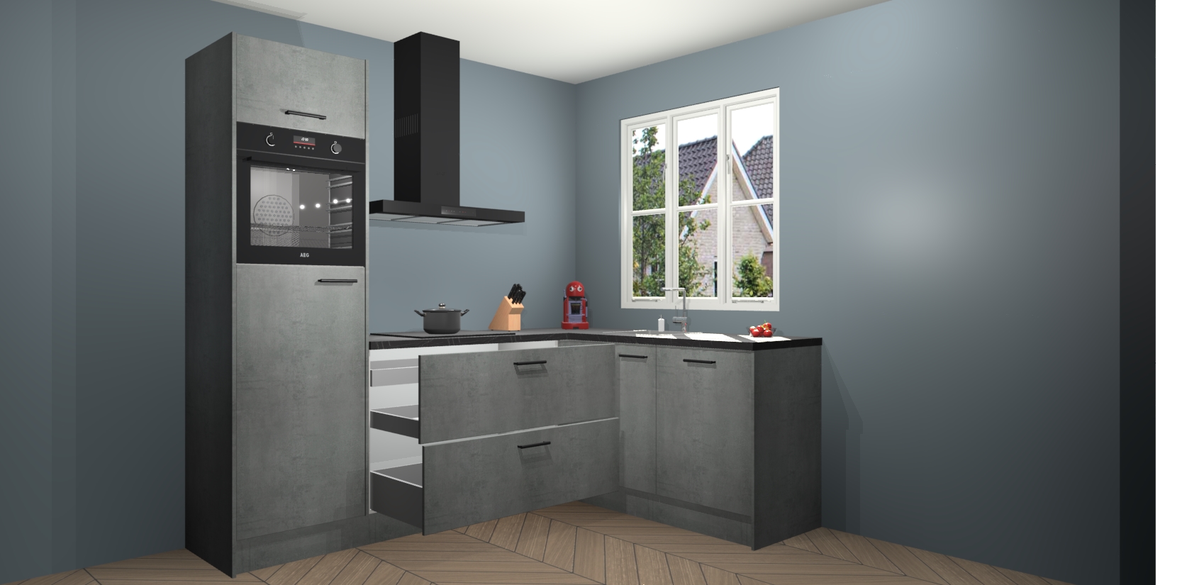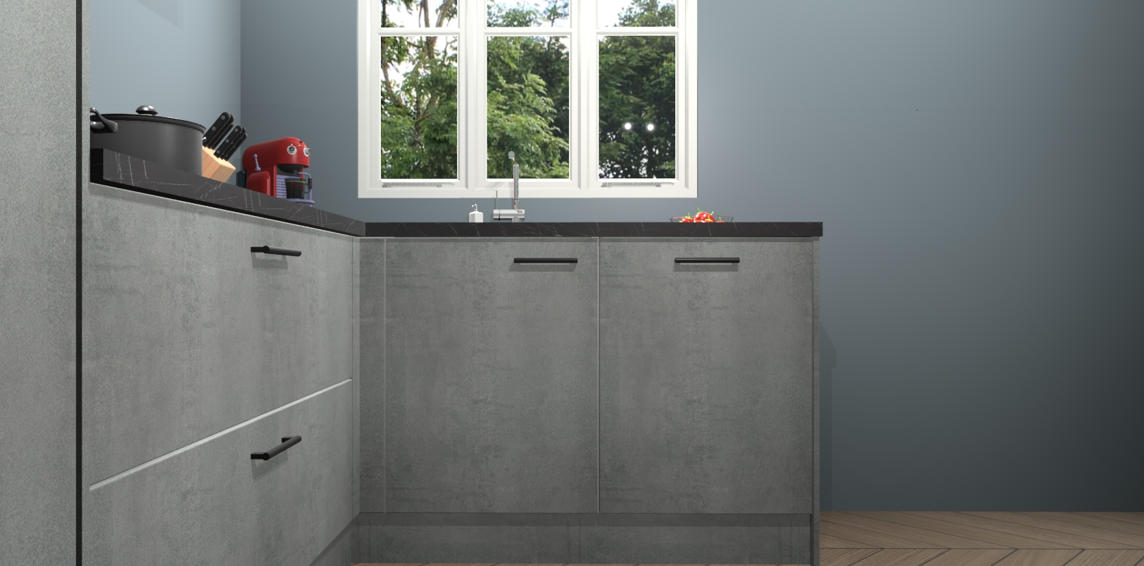 Bestellen was nog nooit zo makkelijk en we leveren met slechts 7 weken; zodra de keuken arriveert staan de kasten voor gemonteerd klaar om er alles aan te doen dat u hem gemakkelijk zelf kunt installeren! Eén ding is zeker: met de Beton Parelgrijs keuken Victoria slaagt u erin modischer, modernere keukens uit te rusten die tientallen jaren meegaan! Haal snel uw Beton Parelgrijs keuken Victoria - of u nu net begint of al 'levenservaring' hebt in de keukendroomloopbaan - want dit topmodel van onze collectie wilt u absoluut niet missen.