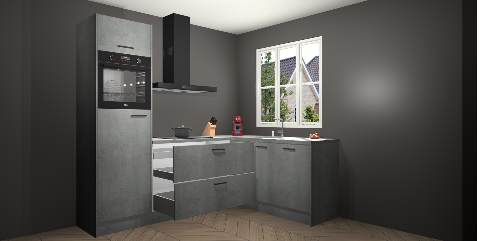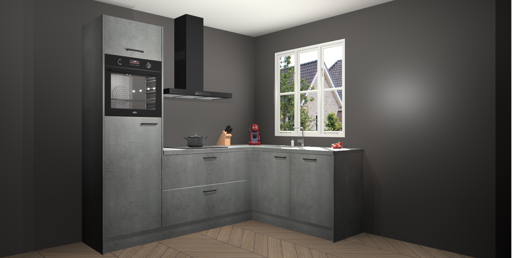 Dit model biedt u voldoende opbergruimte en vijf ingebouwde apparaten: een oven, inductiekookplaat, afzuigkap, vaatwasser en koelkast. Deze apparaten kunnen gemakkelijk worden geüpgrade naar AEG nadat u besteld heeft. De verschillende laden en kastjes bevatten softclose-deuren waardoor ze gezellig dichtvallen met een geruststellend helemaal geruisloos geluid. En dat is nog niet alles! We garanderen ook dat de prijs altijd laag blijft - dus haal nu uw Beton Parelgrijs keuken Victoria terwijl het kan.