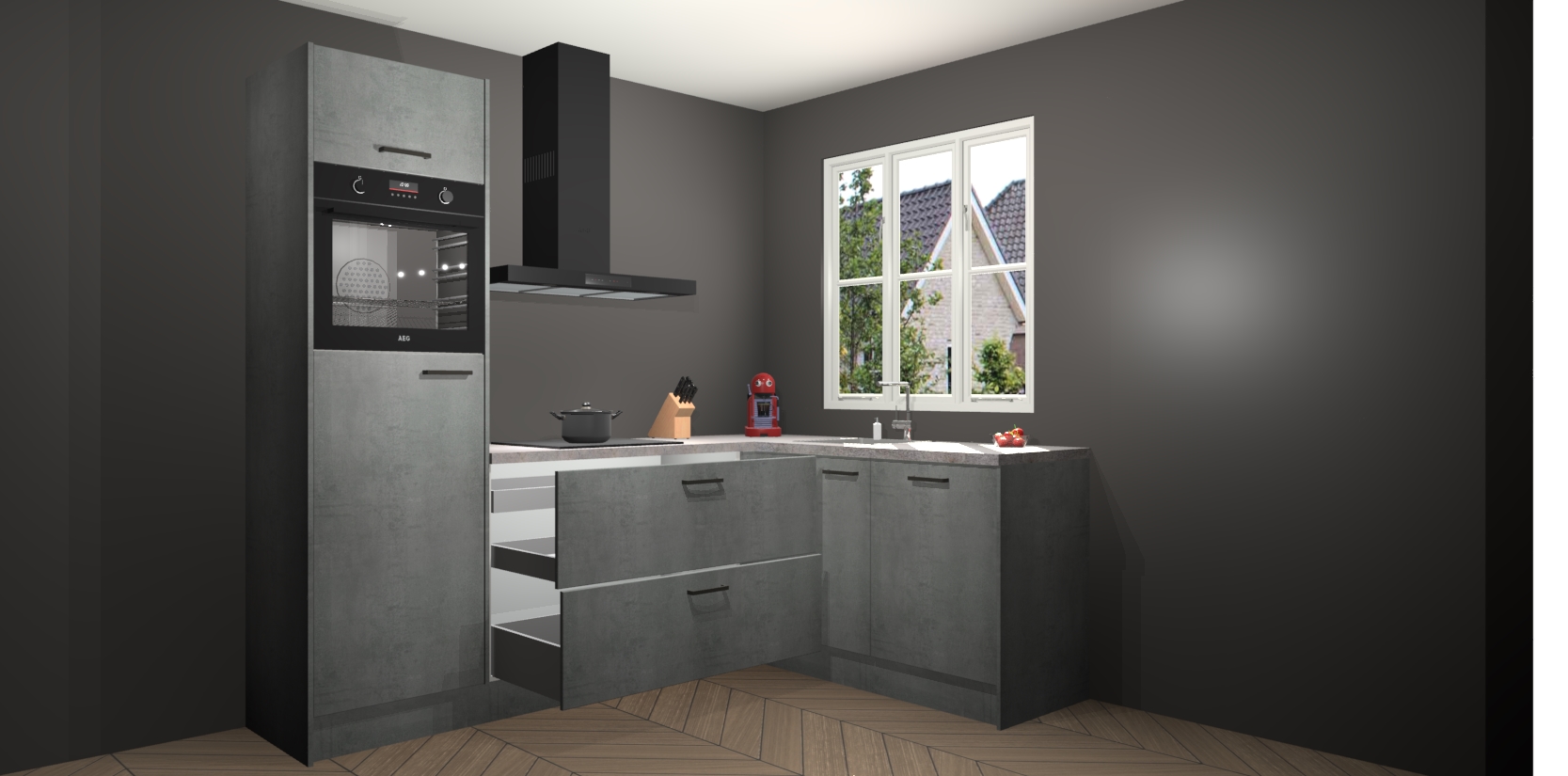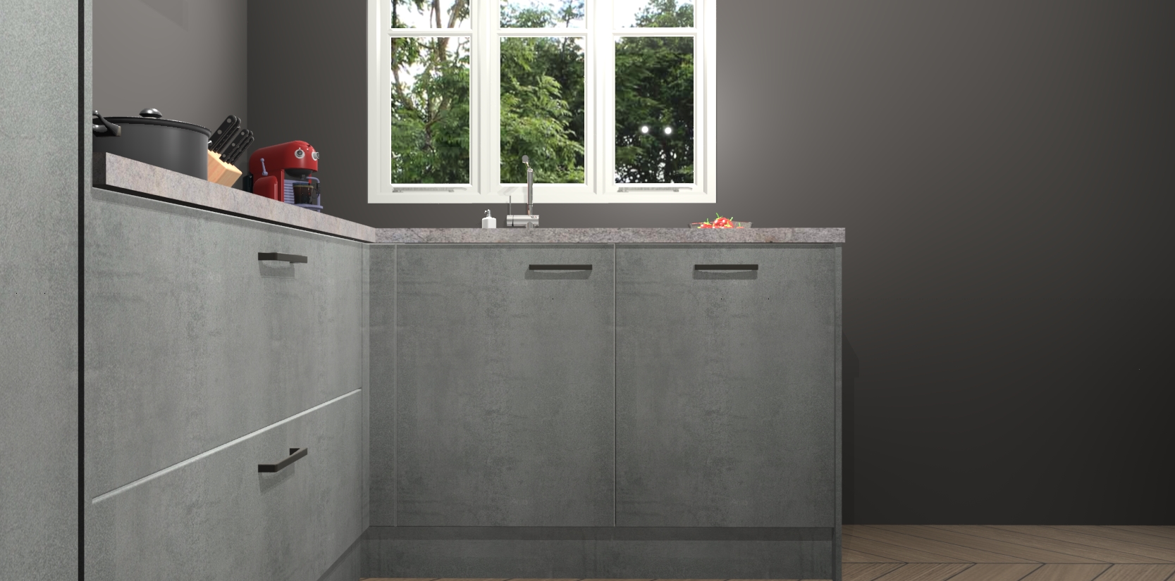 Bestellen was nog nooit zo makkelijk en we leveren met slechts 7 weken; zodra de keuken arriveert staan de kasten voor gemonteerd klaar om er alles aan te doen dat u hem gemakkelijk zelf kunt installeren! Eén ding is zeker: met de Beton Parelgrijs keuken Victoria slaagt u erin modischer, modernere keukens uit te rusten die tientallen jaren meegaan! Haal snel uw Beton Parelgrijs keuken Victoria - of u nu net begint of al 'levenservaring' hebt in de keukendroomloopbaan - want dit topmodel van onze collectie wilt u absoluut niet missen.