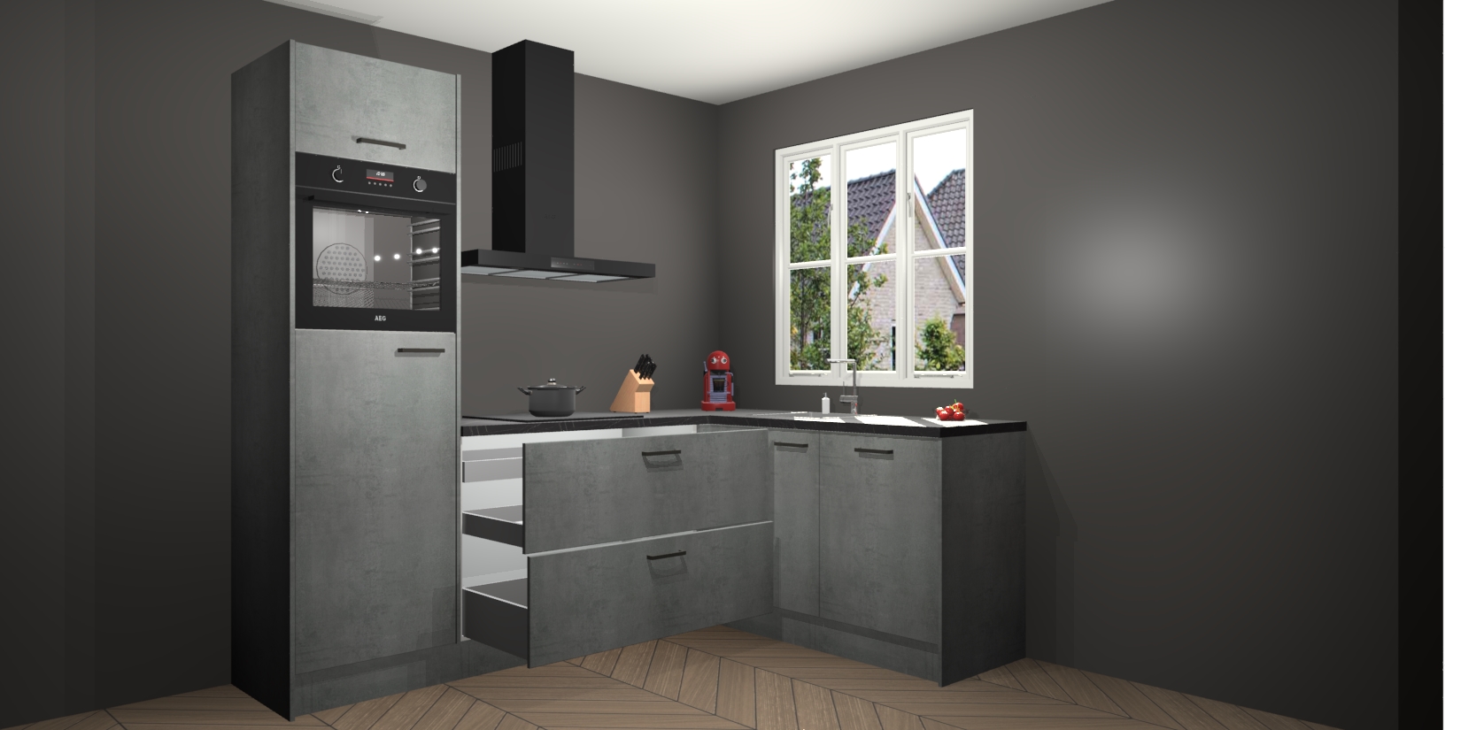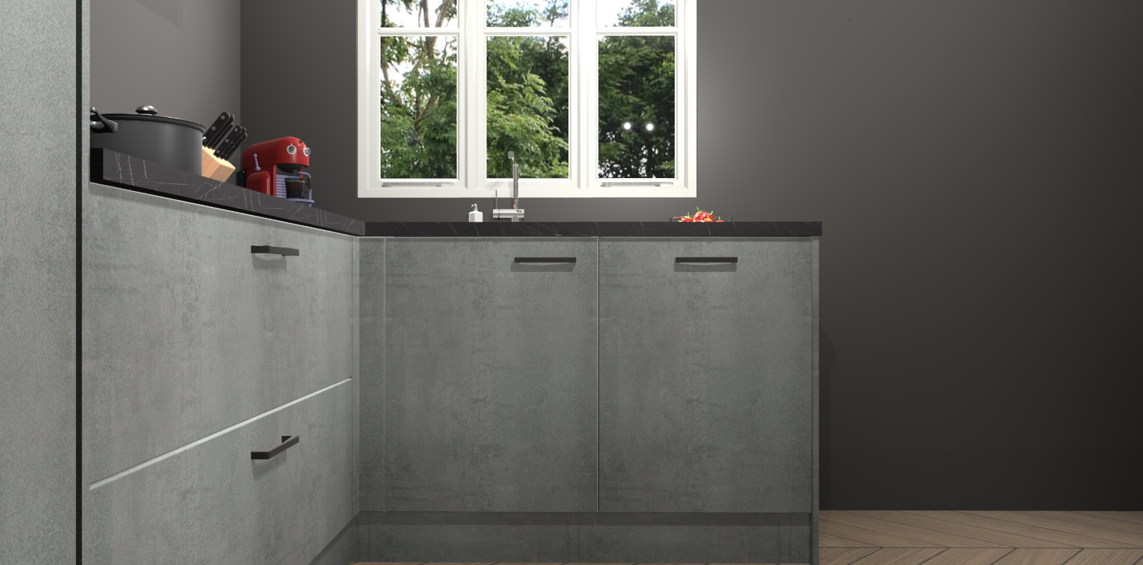 Bestellen was nog nooit zo makkelijk en we leveren met slechts 7 weken; zodra de keuken arriveert staan de kasten voor gemonteerd klaar om er alles aan te doen dat u hem gemakkelijk zelf kunt installeren! Eén ding is zeker: met de Beton Parelgrijs keuken Victoria slaagt u erin modischer, modernere keukens uit te rusten die tientallen jaren meegaan! Haal snel uw Beton Parelgrijs keuken Victoria - of u nu net begint of al 'levenservaring' hebt in de keukendroomloopbaan - want dit topmodel van onze collectie wilt u absoluut niet missen.