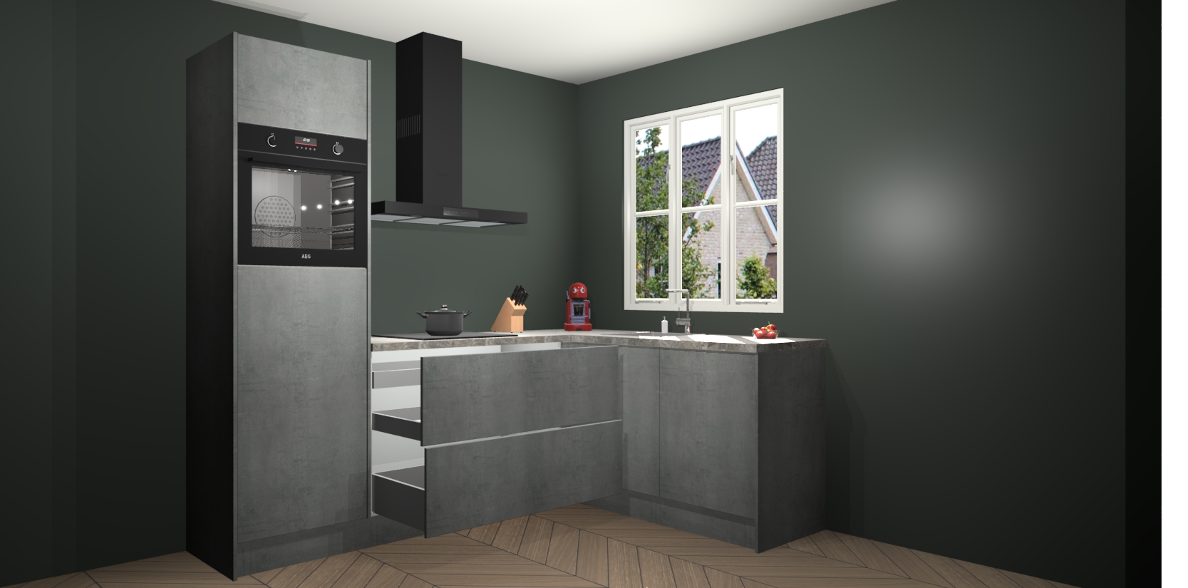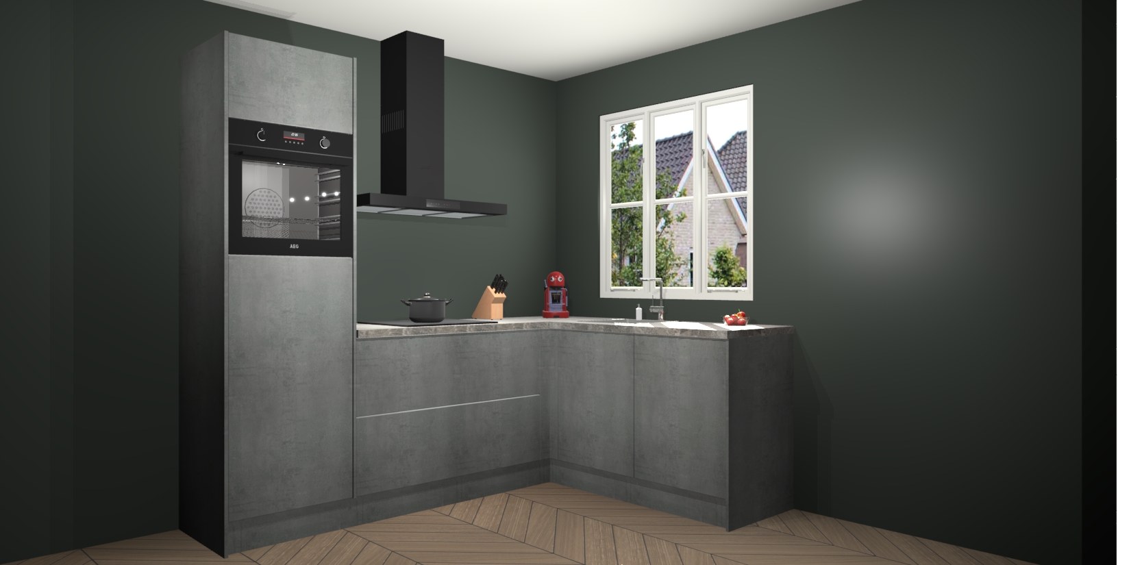 Dit model biedt u voldoende opbergruimte en vijf ingebouwde apparaten: een oven, inductiekookplaat, afzuigkap, vaatwasser en koelkast. Deze apparaten kunnen gemakkelijk worden geüpgrade naar AEG nadat u besteld heeft. De verschillende laden en kastjes bevatten softclose-deuren waardoor ze gezellig dichtvallen met een geruststellend helemaal geruisloos geluid. En dat is nog niet alles! We garanderen ook dat de prijs altijd laag blijft - dus haal nu uw Beton Parelgrijs keuken Victoria terwijl het kan.