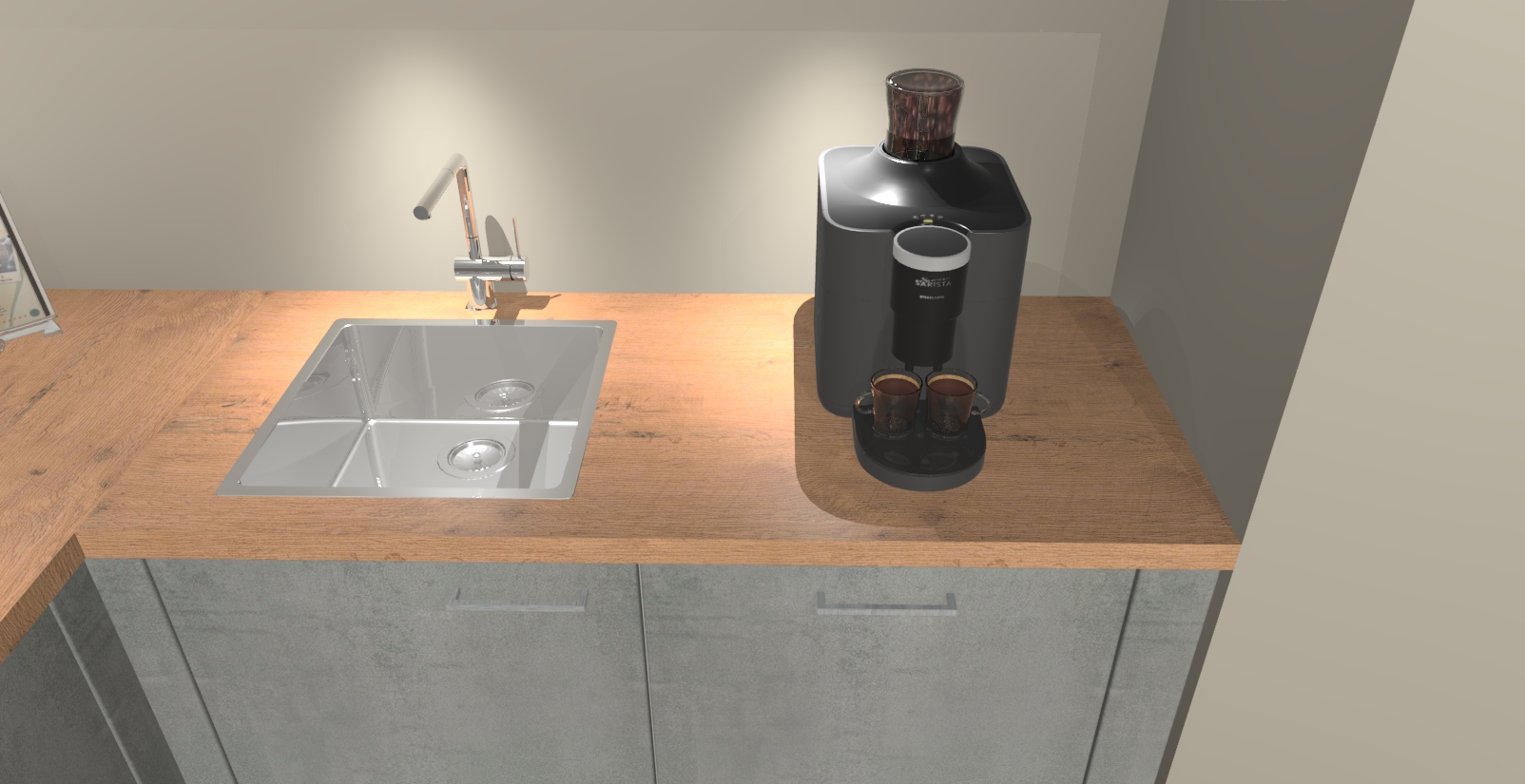 - De spoelbak is nog niet in gevreesd. Dit dient tijdens het werk gedaan te worden
