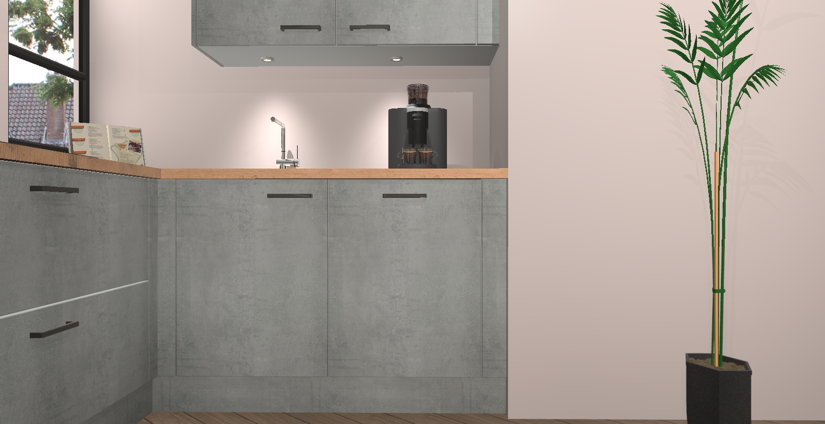 Welkom in uw nieuwe moderne keuken! Laat ons u voorstellen aan de Beton Parelgrijs keuken Vlaanderen . Deze prachtige hoekkeuken straalt exclusiviteit en luxe uit als geen ander. Het strakke design, de tijdloze kleuren en het model maken van deze keuken een moderne klassieker. En met voldoende opbergruimte heeft deze keuken echt voor ieder wat wils.