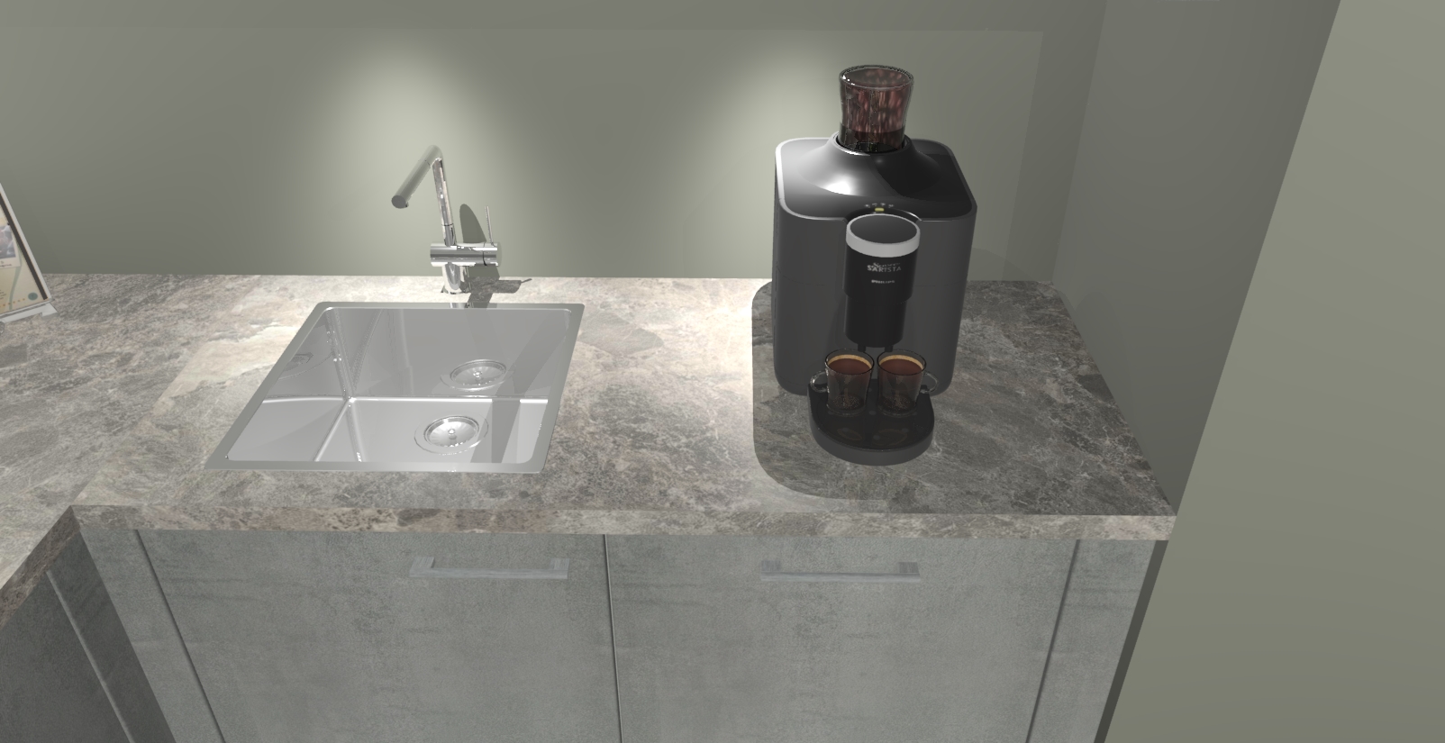 - De spoelbak is nog niet in gevreesd. Dit dient tijdens het werk gedaan te worden
