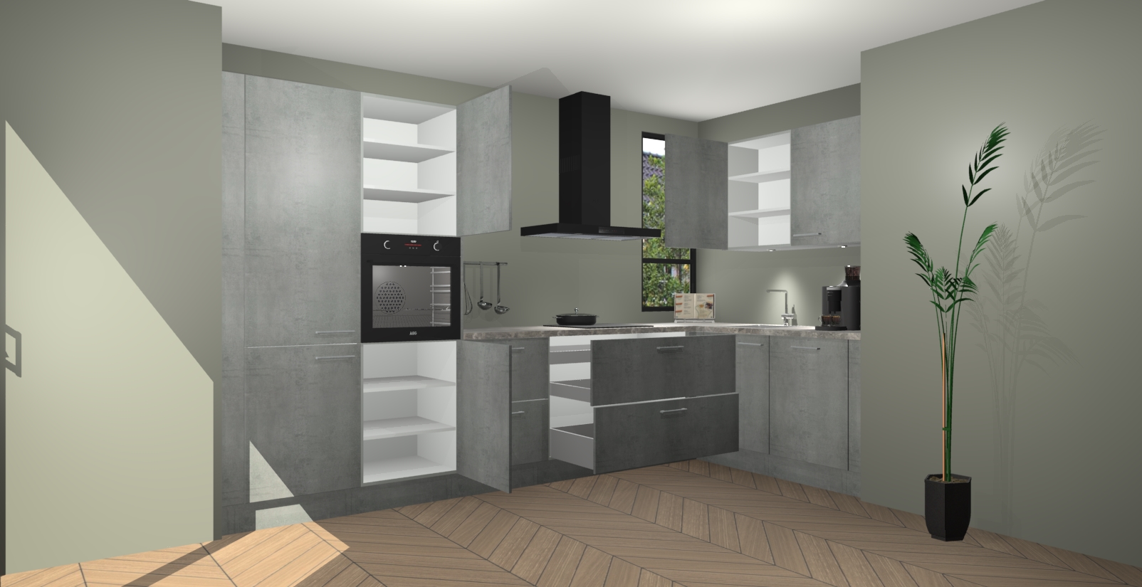 Welkom in uw nieuwe moderne keuken! Laat ons u voorstellen aan de Beton Parelgrijs keuken Vlaanderen . Deze prachtige hoekkeuken straalt exclusiviteit en luxe uit als geen ander. Het strakke design, de tijdloze kleuren en het model maken van deze keuken een moderne klassieker. En met voldoende opbergruimte heeft deze keuken echt voor ieder wat wils.