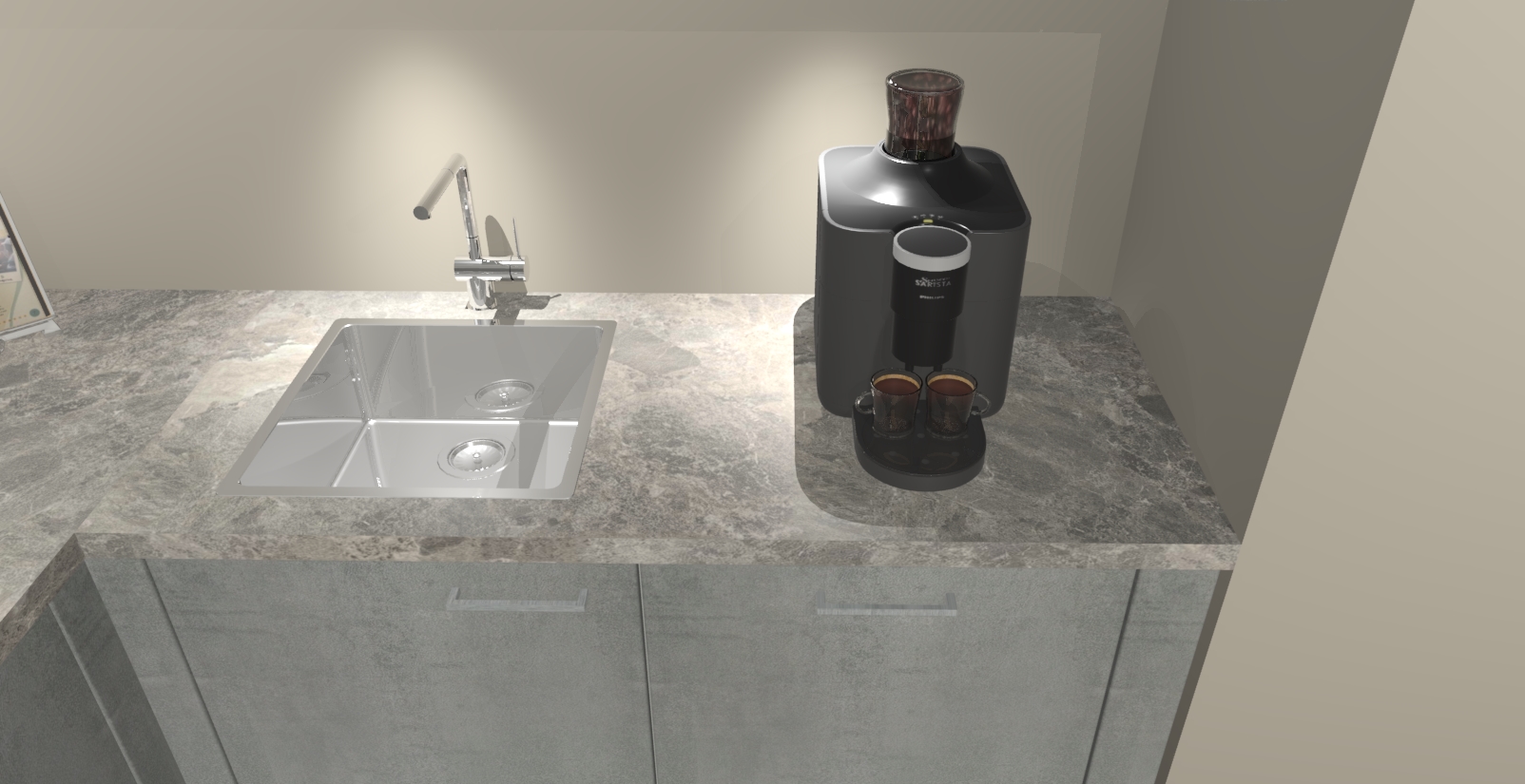 - De spoelbak is nog niet in gevreesd. Dit dient tijdens het werk gedaan te worden